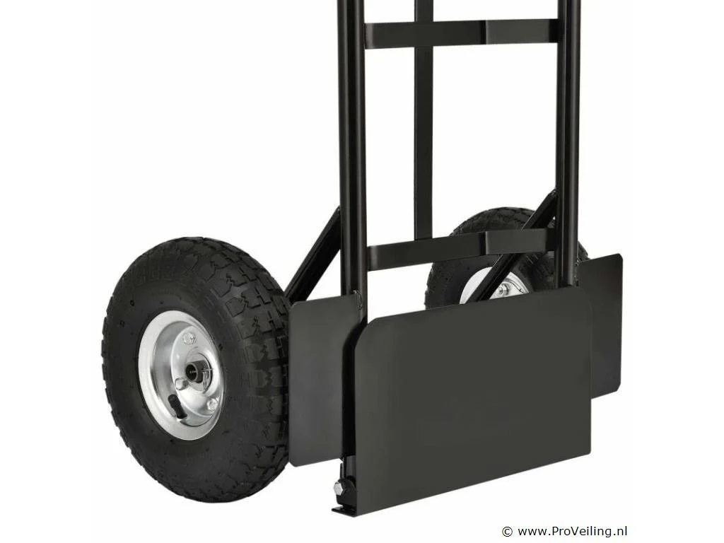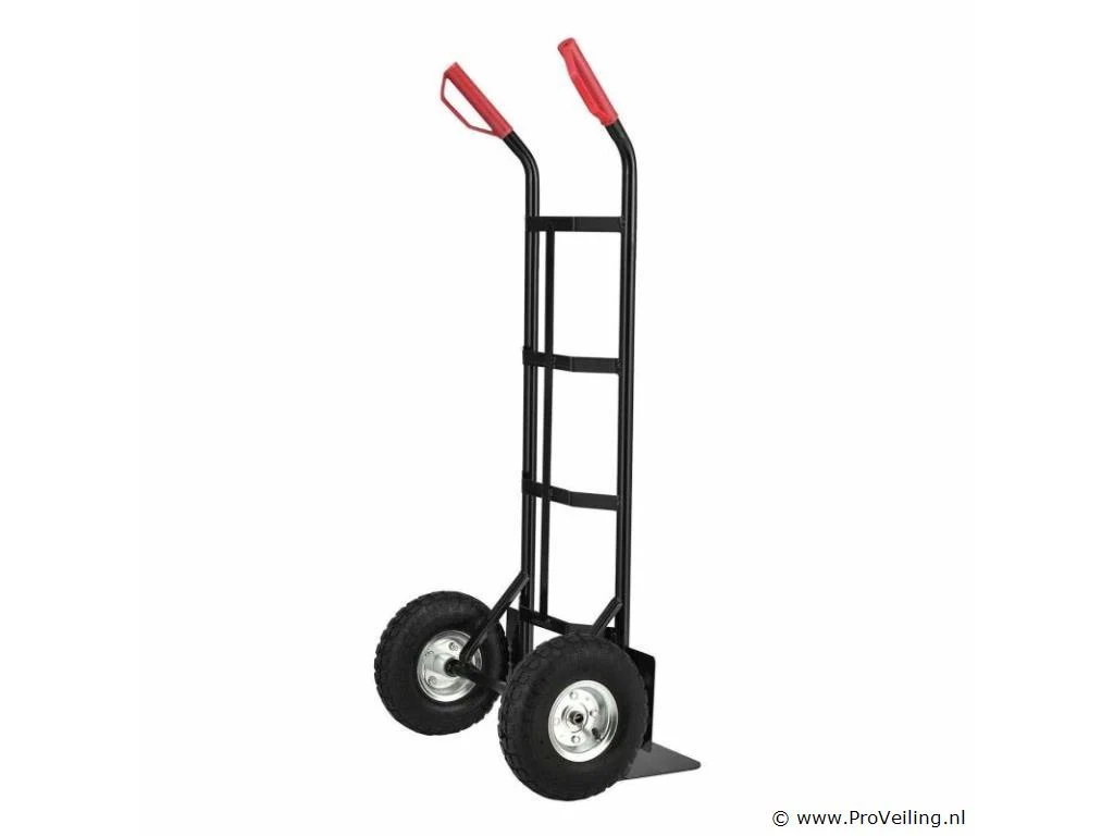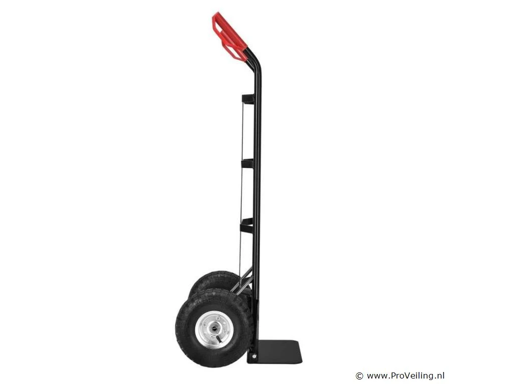 De praktische steekwagen Basic 100 kg met grote wielen en rode handvatten is de ideale hulp bij het vervoeren van zware en onhandelbare voorwerpen. Drankkratten, verhuisdozen, meubels of elektronische apparaten - met deze robuuste stalen steekwagen vervoert u alles snel en eenvoudig. De transportwagen is geschikt voor zowel binnen- als buitengebruik. Het is gemakkelijk te rangschikken. Obstakels zoals trappen of stenen worden gemakkelijk overwonnen. U bespaart veel tijd en moeite en beschermt ook uw rug. Technische specificaties: Draagvermogen: max. 100 kg Gewicht: 9kg Kleur: zwart, rood Materiaal: staal, kunststof Afmetingen (ongeveer): Hoogte: 118cm Breedte: 44cm Laadschop: 35,5 x 19 cm Leveringsomvang: 1 x steekwagen 1 x Duitstalige montagehandleiding