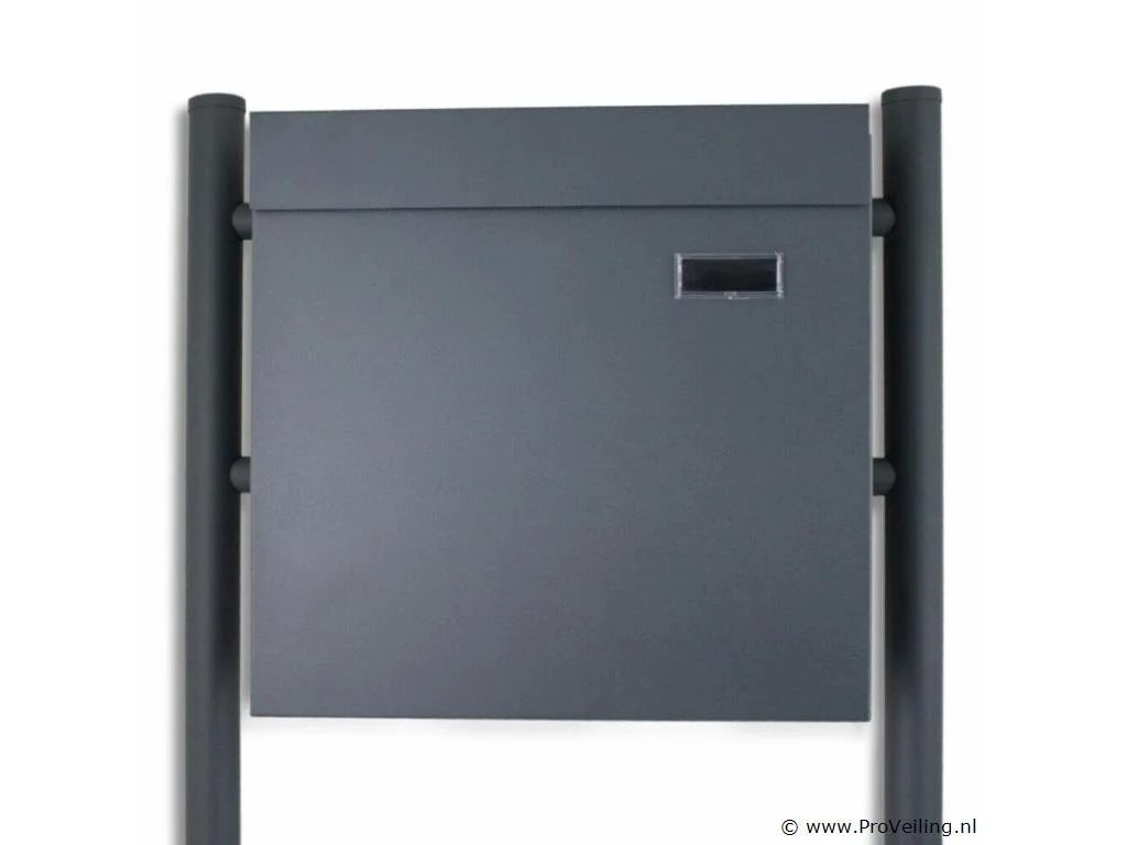 Met zijn tijdloze, elegante design past deze staande brievenbus perfect in elke woonomgeving. En dankzij het compacte ontwerp neemt de staande brievenbus weinig ruimte in beslag. De montage is snel en eenvoudig met de hand. De levering bevat 2 standaards, 2 kruisschoren, bevestigingsmateriaal en elk twee sleutels Technische specificaties: Afmeting (B/H/D) 50 cm x 120 cm x 13 cm Afmetingen brievenbus (B/H/D) 37 cm x 36,5 cm x 10,5 cm Afmeting krantenvak (B/H/D) 36 cm x 9 cm x 8 cm Afmetingen sleuf (B/D) 33cm x 3,5cm Standhoogte 1.20 m Standaard doorsnee 4 cm Materiaal: metaal, gepoedercoat Gewicht 5,25 kg Kleur: donkergrijs Leveringsomvang: 1x brievenbus 2x standaard 2x kruisschoren 2x sleutels bevestigingsmateriaal