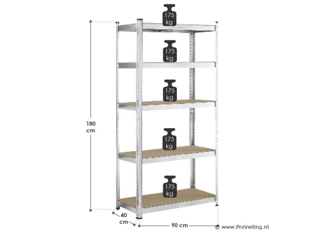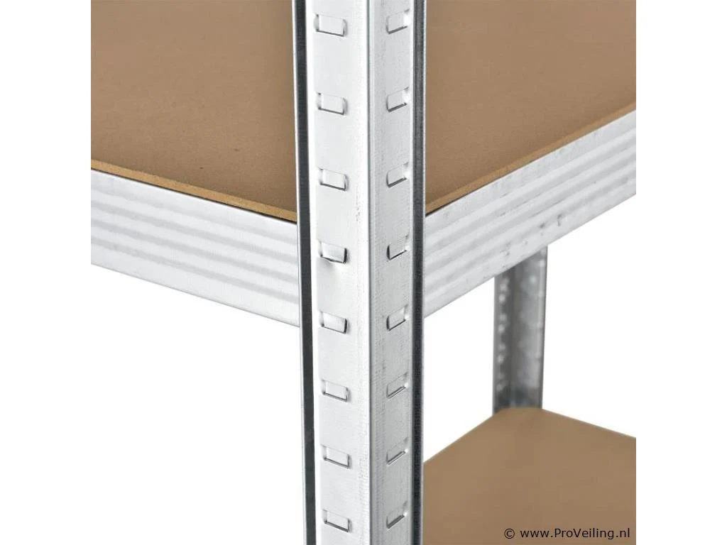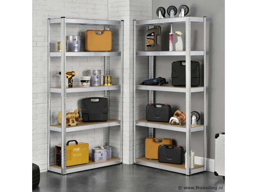 Het praktische opbergrek Basic set van 2 (zilver), bestaande uit twee planken van 180 x 90 x 40 cm, is de perfecte aanvulling voor de kelder, garage, werkplaats, berging en andere woonruimtes. De twee zware planken zijn gemaakt van gegalvaniseerd metaal. Met in totaal 10 planken bieden de stabiele insteekplanken veel ruimte voor het overzichtelijk en overzichtelijk opbergen van gereedschap, tuinaccessoires, benodigdheden en andere spullen. Kunststof voetjes beschermen je vloer tegen lelijke krassen. Technische specificaties: Materiaal frame: metaal, verzinkt Materiaal planken: 100% hout (MDF) Materiaal voetjes: kunststof Kleur: Zilver Legborden per heavy-duty legbord: 5 Maximaal draagvermogen per plank: 175 kg Totaal aantal verdiepingen: 10 Maximaal totaal draagvermogen: 1750 kg Aantal dwarsbalken: 10 Aantal voeten: 16 Afmetingen (ongeveer): Hoogte: 180 cm Breedte: 90 cm Diepte: 40cm Leveringsomvang: 2 x Opbergrek 10 x planken 1 x Instructie Let op: Je ontvangt het product goed verpakt als bouwpakket voor zelfmontage per pakketdienst. Opmerking: draag handschoenen bij het monteren van de planken om verwondingen te voorkomen.