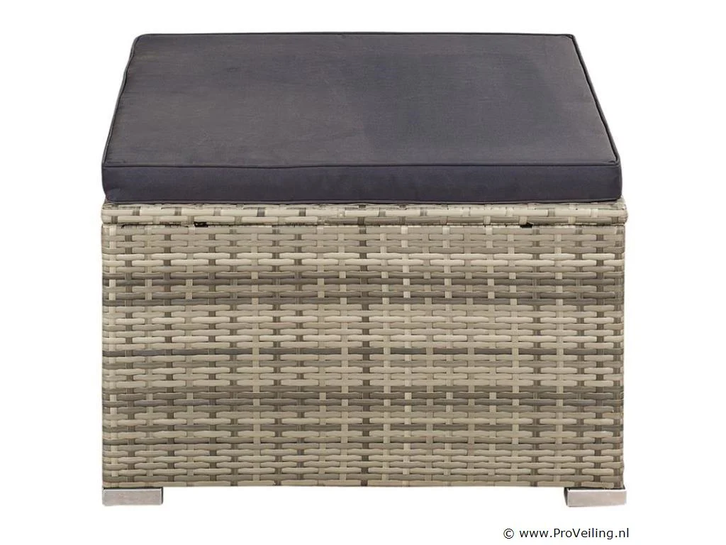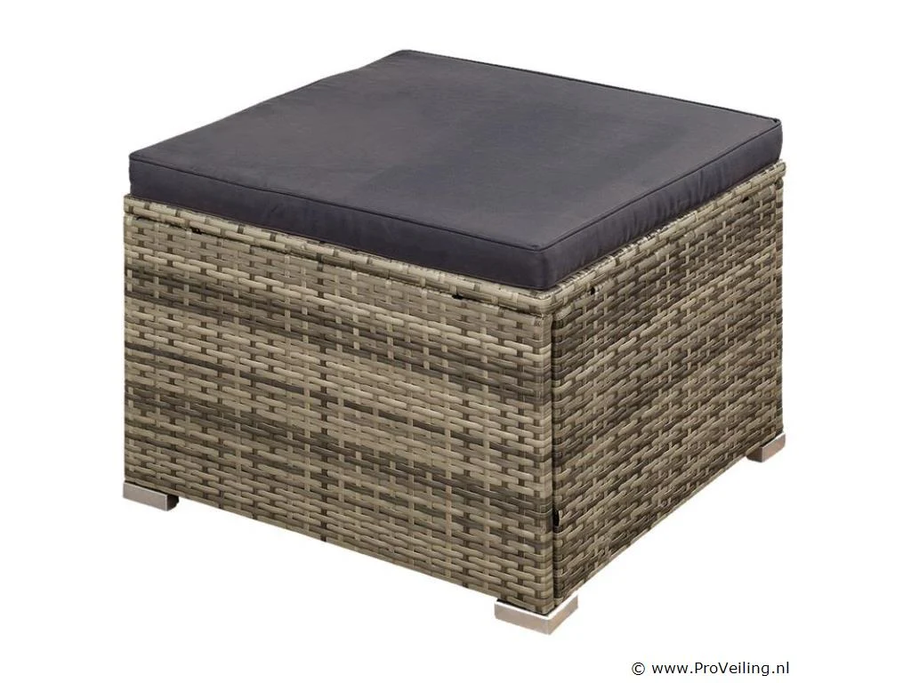 Ben je op zoek naar een comfortabele en grote loungeset voor in je tuin, terras of balkon? Met de zitgroep "Punta Cana M" verander je je buitenruimte in een stijlvolle plek om te ontspannen en je goed te voelen. Gezellige avonden met familie, vrienden of buren worden een geweldige belevenis in de buitenlucht. De unieke rotan-look in beigegrijs met grijze kussens geeft je nieuwe loungemeubel een moderne charme. Creëer je eigen oase van welzijn om te ontspannen en samen te zitten. Technische specificaties: Materiaal: Weefsel: vezels van polyrotan Frame: staal Tafelblad: glas Zitkussens: schuim Hoezen: 100% polyester Zithoogte: 37 cm Dikte zitkussen: 5 cm Dikte glasplaat: 0,5 cm Kleur: Vlecht: gemêleerd grijs Kussenslopen: donkergrijs Afmetingen (ongeveer): Bank: 178 × 69 × 65 cm (L x B x H) Tafel: 61 × 61 × 37 cm (L x B x H) Kruk: 61 × 61 × 37 cm (L x B x H) Dikte zitkussen: 5 cm Dikte glasplaat: 0,5 cm Breedte rugkussen: 54 cm Zitkruk: 60 × 60 cm Leveringsomvang: 1x tafel 1 x Bank 1 x kruk 4 x zitkussens 3 x rugkussens 1 x montagehandleiding