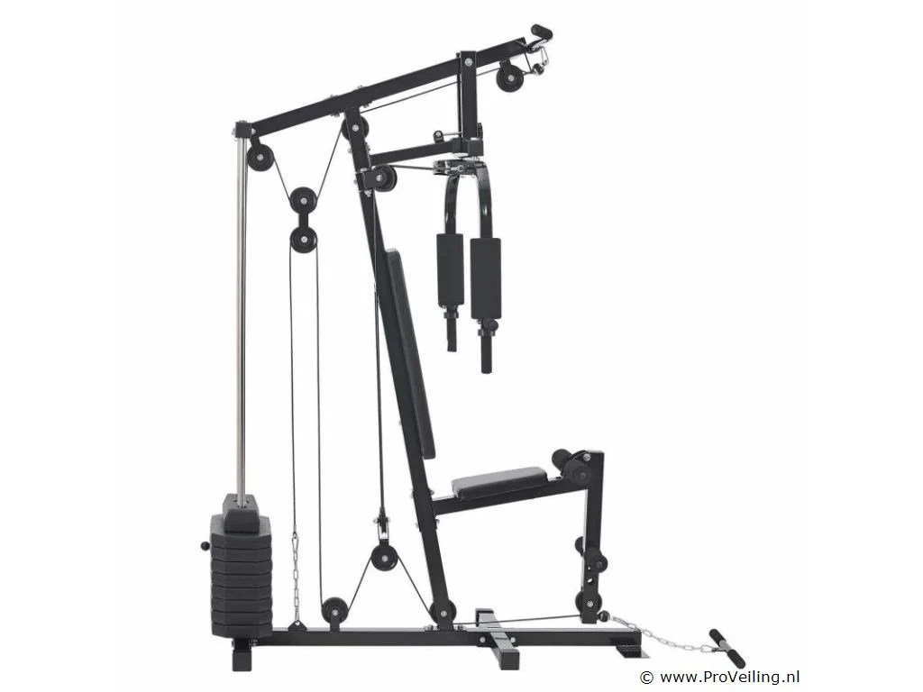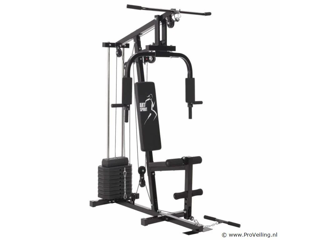 Uw persoonlijke fitnessstudio voor thuis: het ArtSport krachtstation ProfiGym 2000. Met dit krachtstation traint u effectief uw hele lichaam - ideaal voor uw intensieve thuistraining. De doordachte hometrainer is extreem ruimtebesparend en combineert meerdere sporttoestellen in één. Vervolg uw trainingsplan binnen uw eigen vier muren: bevorder spierdefinitie door gevarieerde fitnessoefeningen voor het boven- en onderlichaam. Pas de intensiteit eenvoudig aan naarmate je vordert met behulp van de halterschijven. Het trainingsstation is daarom ideaal voor dames en heren. Technische specificaties: Materiaal krachtstation: staal Materiaal zit- en rugkussens: PE-schuim, PVC-leer De kleur zwart Plaatgewicht: 8 × 4,5 kg Gewicht bovenplaat: 1 × 4,3 kg Totaal halterschijven: 40,3 kg Afmetingen (ongeveer): Totale afmetingen: 135 × 103 × 201 cm Leveringsomvang: 1 x krachtstation van ArtSport 1 x vlinderstang 1 x lat pulldown stang 1 x biceps katrol 9 x halterschijven 1 × Instructie