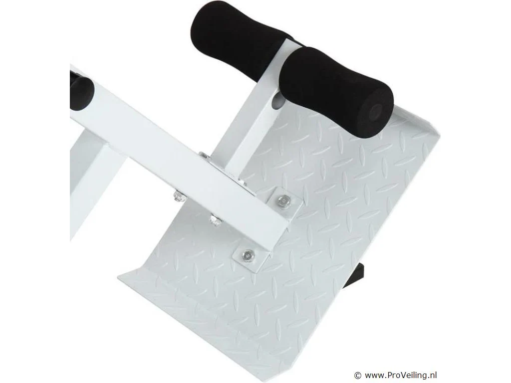 Ter versterking van rug en billen. Met dit praktische, opvouwbare en eenvoudig te bedienen apparaat kun je rugoefeningen uitvoeren en zo het bezoek aan de sportschool voorkomen. Geschikt voor beginners en professionals. Ergonomisch gevormd, gemaakt van robuust staal. Afmetingen (l x b x h): ca. 135/55/78/93 cm Toelaatbaar gewicht: 120 kg. Effectieve oefeningen door hoek van 45 graden. Gemaakt van robuust staal. Geschikt voor personen tussen 160-200 cm hoogte. Praktische handgrepen voor meer stabiliteit. Bekleding (wielen van schuim met hoge dichtheid). Met 6 sneeuwbladeren. Technische gegevens: Afmetingen (l x b x h): ca. 135/55/78/93 cm Gewicht: ca. 12,9 kg. Geschikt voor personen tussen 160-200 cm hoogte. Materiaal: metaal, kunststof en kunstleer. Maximaal gebruikersgewicht: 120 kg. Materiaalsamenstelling: 100% polyurethaan. Kleur: wit en zwart. Inhoud levering: 1 x rugtrainer RKTN02 montage vereist. 1 x montagehandleiding (Duits/Frans/Spaans).
