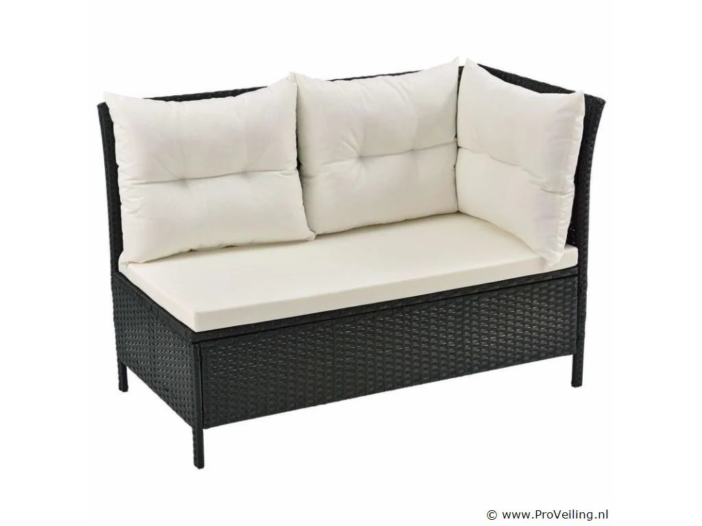 Met de Manacor polyrattan loungeset verander je je tuin, terras of balkon in een stijlvolle plek om te relaxen en je goed te voelen. De grote tuinlounge met een bank, 2 krukken en een tafel is geschikt voor maximaal 7 personen. Zachte zit- en rugkussens zorgen voor een comfortabele zitervaring. De grote eettafel is beschikbaar om te dineren of bordspellen. Gezellige avonden met familie, vrienden of buren worden een geweldige belevenis in de buitenlucht. De unieke rotan-look geeft de tuinmeubelset een moderne charme. Technische specificaties: Materiaal frame: staal, gepoedercoat Materiaal gaas: polyrotan Materiaal tafelblad: veiligheidsglas Materiaal zitkussen: 100% schuim Materiaal hoezen: 100% polyester Vlechtkleur: zwart Kleur hoes: creme Dikte glasplaat: 5 mm Aantal zitkussens: 5 Aantal rugkussens: 7 Dikte kussen: 5 cm Omslagen: 220g/m2 Afmetingen (ongeveer): Bankelement links: 110 x 62 x 80 cm Rechter bankelement: 110 x 62 x 80 cm Centraal bankelement: 118 x 62 x 80 cm Kruk: 40 x 40 x 35 cm Tafel: 116 x 66 x 66 cm Let op: De hoezen van de zitkussens kunnen eraf geritst en gewassen worden. De hoezen van de rugkussens zijn echter niet afneembaar (hoes aan het kussen genaaid) en dus niet wasbaar. Ze hebben een ritssluiting, maar die heeft geen functie. Alleen de hoezen van het zitkussen zijn wasbaar. Ververs de impregnering na het wassen. Het hele kussen mag niet in de wasmachine, anders zal de vulling eronder lijden. Leveringsomvang: 1 × hoekbank 2 × krukken 1 × tafel 2 × glasplaten 5 × zitkussens 7 × rugkussens 1 × Instructie