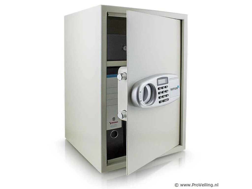 Het is ideaal voor het opbergen van dossiers, kostbaarheden of belangrijke documenten. Kies tussen veilige wand- of kastmontage. De plank is uitneembaar en in hoogte verstelbaar. De kluis kan alleen worden geopend door het invoeren van uw persoonlijke pincode of met de meegeleverde beveiligingssleutel. De deur met dubbel grendelslot beveiligt de kluis tegen onbevoegd openen. Veilige opslag, elektronische kluis voor wand- of kastmontage. Inrichting: Programmeerbare elektr. combinatieslot dubbele boutvergrendeling Uitneembaar en in hoogte verstelbaar inlegvel Wand- en kastmontage Technische data: Buitenafmetingen 35 x 52 x 36 cm Binnenmaat 34,5 x 51,5 30 cm Stalen wanddikte 2 mm Stalen deurdikte 4 mm Gewicht 20kg Kleur lichtgrijs Leveringsomvang: 1x kluis met elektr. combinatieslot 2x beveiligingssleutels 2x bevestigingsbouten 1x gebruiksaanwijzing