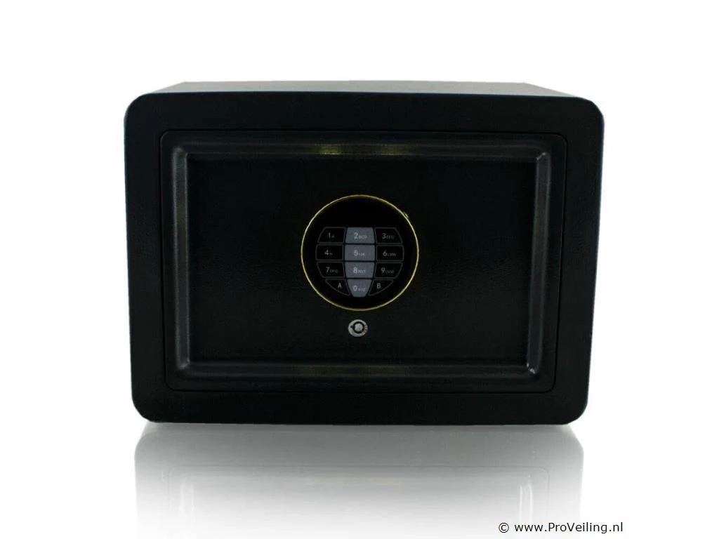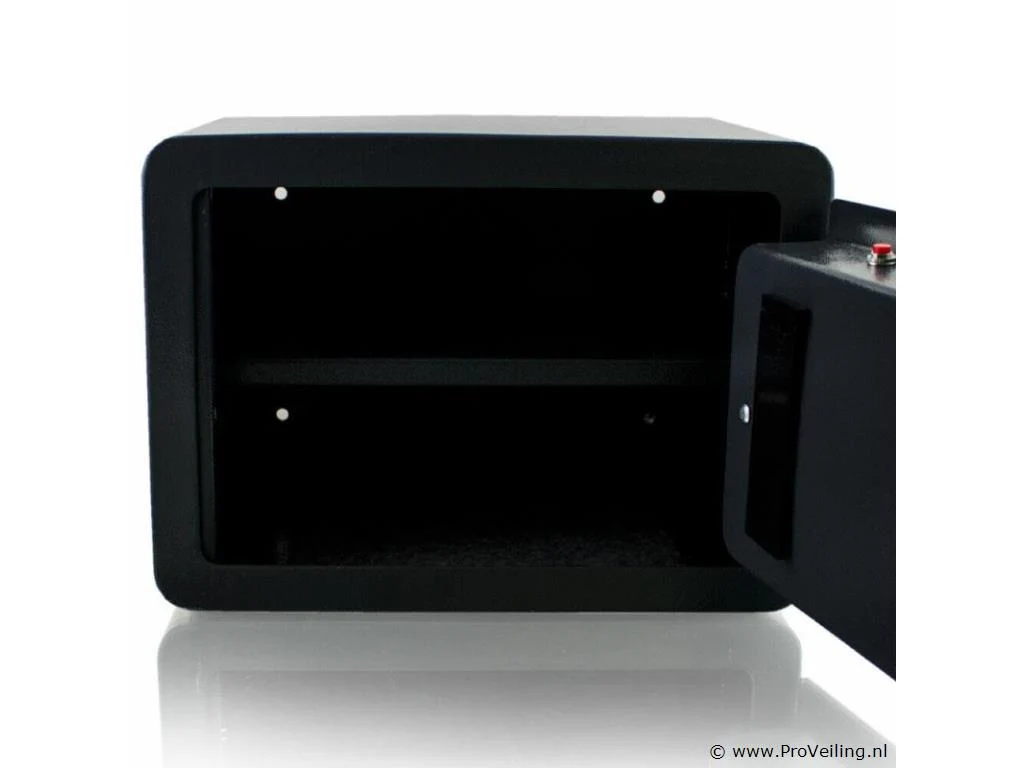 Design Veilig Zwart - Veilig voor wand- of kastmontage - elektronisch cijferslot (programmeerbaar) - Deur met dubbele grendelvergrendeling - inclusief 2 sleutels Bescherm waardevolle spullen met deze elektronische kluis. Het is ideaal voor het opbergen van waardevolle spullen of belangrijke documenten. Vanwege zijn formaat is hij zeer onopvallend en ruimtebesparend te installeren - kies tussen veilige wand- of kastmontage. De kluis kan alleen worden geopend door het invoeren van uw persoonlijke pincode of met de meegeleverde beveiligingssleutel. De deur met dubbel grendelslot beveiligt de kluis tegen onbevoegd openen. TECHNISCHE SPECIFICATIES Buitenafmetingen (B/H/D) 355 mm x 255 mm x 250 mm Interne afmetingen (B/H/D) Interne afmetingen: 350 mm x 250 mm x 195 mm (B/H/D) met gesloten deur sterkte stalen wand 2 mm Stalen deurdikte 3 mm De kleur zwart Gewicht: 9,95 kg LEVERINGSOMVANG - 1 x kluis - 4x bevestigingsbouten