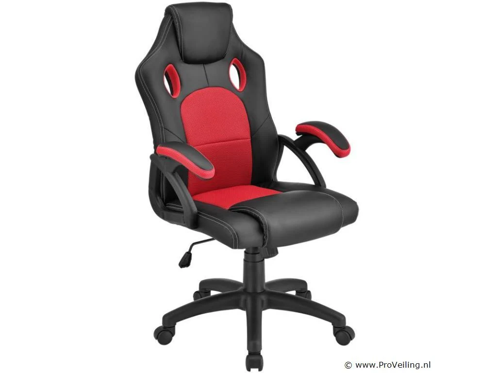 Racing bureau Montreal (rood) - met kantelbare rugleuning & gestoffeerde armleuningen De gezellige Racing bureaustoel Montreal (rood) overtuigt met een hoog zitcomfort. Met zijn ergonomisch gevormde zitting, de kantelbare rugleuning en zitting en de gecapitonneerde armleuningen laat de moderne bureaustoel in trendy racer design urenlang comfortabel zitten. De draaistoel is daarom ideaal om thuis op kantoor te werken, huiswerk te maken en te leren, en voor gepassioneerde gamers om op de computer te spelen. Stabiele en onderhoudsvriendelijke bureaustoel Solide afwerking en hoogwaardige materialen maken de bureaudraaistoel uiterst stabiel. Het brede onderstel met 5 lichtlopende zwenkwielen zorgt voor extra stabiliteit. De bureaustoel staat stevig op de vloer en is belastbaar tot 120 kg. Stof en vuil kunnen eenvoudig met een vochtige doek van de oppervlakken worden verwijderd. Ga zitten zonder moe te worden en ontlast uw rug Op de bureaudraaistoel zit je zonder moe te worden en zonder je rug te belasten. De ergonomisch gevormde zitting met dikke vulling past zich perfect aan uw lichaamsvorm aan. De gecapitonneerde armleuningen dienen als opbergruimte voor je armen en maken het werken op de pc nog comfortabeler. Ook na een lange periode van werken zit je nog steeds comfortabel. Kantelbare rugleuning met mesh inzetstuk Met de kantelbare rugleuning en zitting pas je de hellingshoek van de gamerstoel optimaal aan je wensen aan. Maak gewoon de veiligheidspal aan de zijkant los en kantel de rugleuning naar achteren. Het mesh-inzetstuk bevordert de luchtcirculatie. Ongewenst zweten behoort nu tot het verleden. In hoogte verstelbaar & vrij draaibaar De zitting is met de gasdrukveer traploos in hoogte te verstellen tussen de 46 en 56 cm. Hierdoor stel je de bureaustoel op de gewenste zithoogte in. De computerstoel is 360° vrij draaibaar. Dit geeft de grootst mogelijke bewegingsvrijheid. Technische specificaties: Materiaal: kunststof, metaal, imitatieleer, mesh inzetstuk Kunstleer kleur: Zwart Netkleur: rood Maximale belasting: 120 kg Afmetingen (ongeveer): Totale hoogte: 101 - 111 cm Hoogte rugleuning: 65 × 66 cm Zitting: 47 x 52 cm Zithoogte: 46 - 56 cm Zitbreedte: 47 cm Zitdiepte: 52 cm