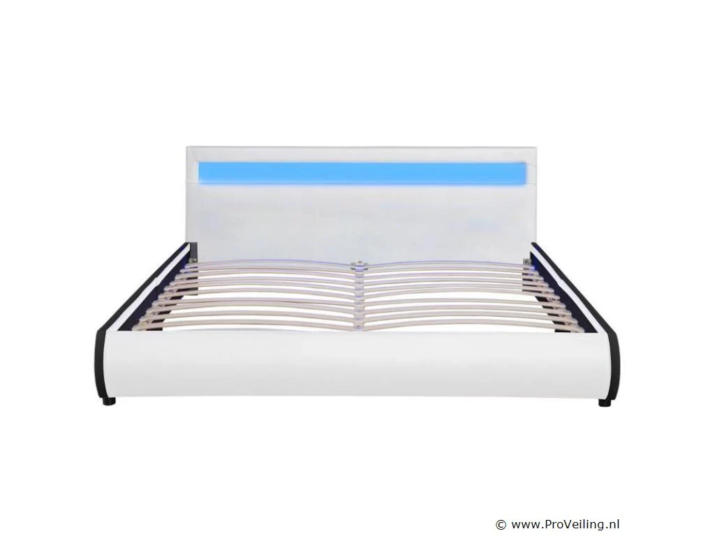 Slaapcomfort is... wakker worden en ontdekken dat het geen droom was. Want het gestoffeerde bed Sevilla (140x200 cm, wit) is echt heerlijk comfortabel en robuust tegelijk. De stabiele lattenbodem biedt de ideale basis voor een gezonde en rustgevende slaap. Dankzij de gecapitonneerde rugleuning kun je ook heerlijk ontspannen tijdens het lezen of tv kijken. Ook biedt het ruimte voor chique led-verlichting die je slaapkamer baadt in sfeervolle kleuren. De moderne uitrusting en het stijlvolle design overtuigen zowel jongeren als volwassenen. Door zijn middelgrote formaat past hij ook perfect als tweepersoonsbed in kleine slaapkamers of logeerkamers. Technische specificaties: Producttype: bedframe Kleur wit Stijl: Modern Materiaal frame: MDF hout, metaal Materiaal bekleding: kunstleer (84% PVC, 16% polyester) Verlichting: LED-strip met afstandsbediening Lichtkleur: 16 verschillende kleuren Vermogen: 14.3W Lichtstroom: 234 lm Kleurtemperatuur: 2000 - 10000K Afmetingen (ongeveer): Afmetingen: 149,5 × 217 cm Ligoppervlak: 140 × 200 cm Hoogte hoofdbord: 74 cm Dikte hoofdbord: 7,5 cm LED-balk: 9 x 140,5 cm Hoogte zijpanelen: 31,5 cm Framedikte zijkanten: 4 cm Hoogte voeteneinde: 27,5 cm Framedikte voeteneinde: 8,5 cm Voeten: 4 cm Opmerkingen over de lichtbron: Het product bevat LED-verlichting. De meegeleverde LED-verlichting is alleen bedoeld voor scène-/accentverlichting en is niet geschikt voor andere toepassingen. De meegeleverde lampen zijn niet verwisselbaar, maar verwijderbaar. De meegeleverde led-verlichting is via IR-afstandsbediening in te stellen en te dimmen. De meegeleverde LED-verlichting moet worden verwijderd voor verwijdering volgens de richtlijn voor afgedankte elektrische en elektronische apparatuur en ElektroG en afzonderlijk worden afgevoerd. Leveringsomvang: 1 x gestoffeerd bed 1 x lattenbodem 1 x afstandsbediening 1 x instructie Let op: Het matras is niet inbegrepen. U ontvangt het product goed verpakt als bouwpakket voor zelfmontage per pakketdienst. Dit artikel bestaat uit 2 dozen, het kan logistiek voorkomen dat het in meerdere dagen geleverd wordt. Onderdelen kunnen zich in het hoofdbord bevinden.