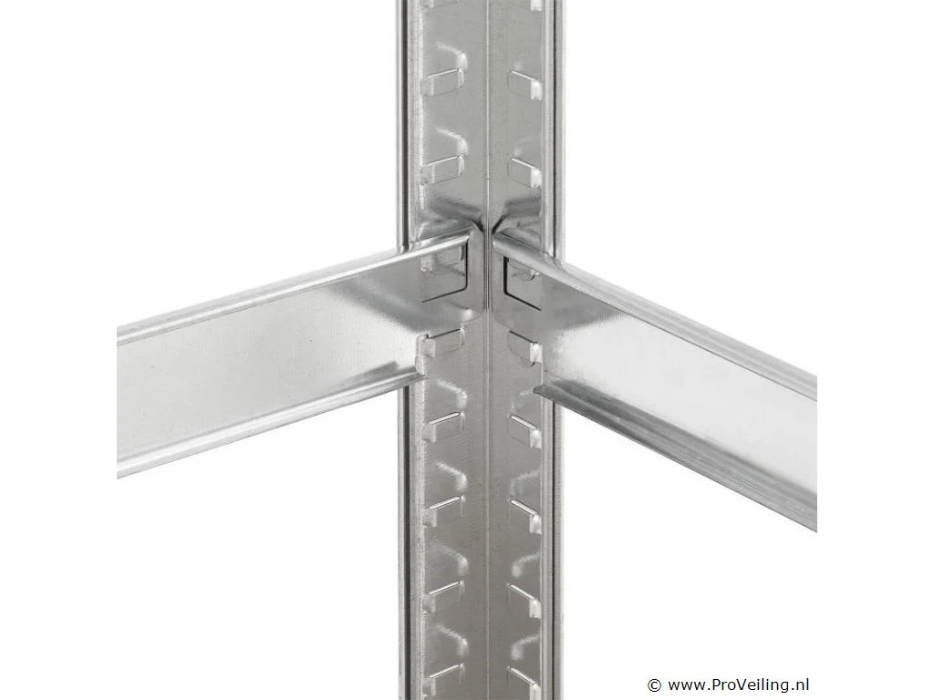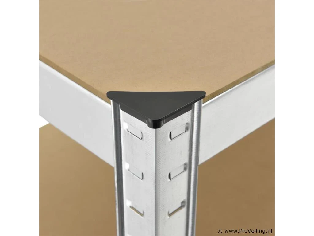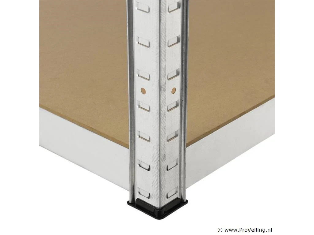 Het praktische opbergrek Basic 200 x 100 x 60 cm (zilver) is de perfecte aanvulling voor kelder, garage, werkplaats, berging en andere woonruimtes. De heavy-duty plank is gemaakt van gegalvaniseerd metaal. Met in totaal 5 planken biedt het stabiele insteekrek veel ruimte voor het overzichtelijk en overzichtelijk opbergen van gereedschap, tuinaccessoires, benodigdheden en andere spullen. Kunststof voetjes beschermen je vloer tegen lelijke krassen. Technische specificaties: Materiaal frame: metaal, verzinkt Materiaal planken: 100% hout (MDF) Materiaal voetjes: kunststof zilver Aantal planken zwaar rek: 5 Maximaal draagvermogen per plank: 175 kg Maximaal draagvermogen van heavy-duty legborden: 875 kg Aantal kruisschoren: 5 Aantal voeten: 8 Afmetingen (ongeveer): Hoogte: 200 cm Breedte: 100cm Diepte: 60cm MDF-plaat: 4 mm Leveringsomvang: 1 × opbergrek 5 × plank 1 × montage-instructies