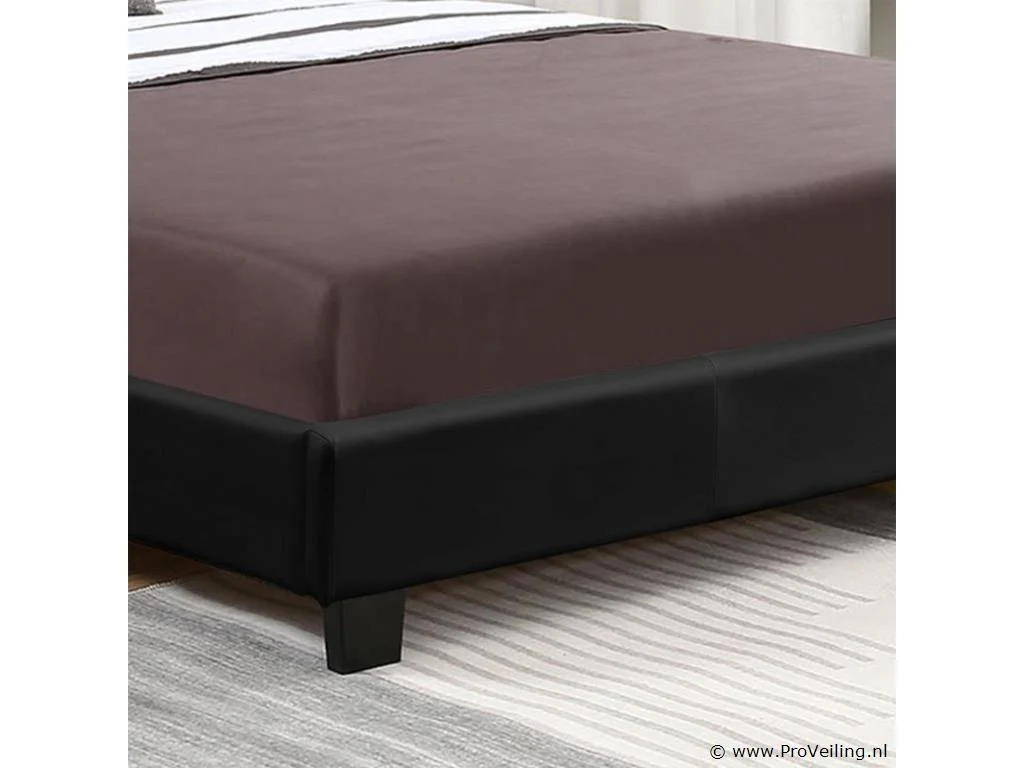 Het knusse gestoffeerde bed Verona (zwart) met LED-verlichting en lattenbodem is de ideale plek om te ontspannen voor een goede en gezonde nachtrust. Met een ligvlak van 120 × 200 cm biedt het comfortabele eenpersoonsbed zowel tieners als alleenstaande volwassenen een extreem ruim aanbod. De eenvoudige hoes geeft het kunstleren bed een moderne uitstraling die naadloos in menig logeerkamer of slaapkamer past. Het charmante meubelstuk is ideaal om uit te rusten en nieuwe energie op te doen. Technische specificaties: Materiaal frame: MDF hout, metaal Materiaal bekleding: kunstleer (84% PVC, 16% polyester) Producttype: bedframe De kleur zwart Stijl: modern Verlichting: LED-strip met afstandsbediening Lichtkleur: 16 verschillende kleuren Vermogen: 12,1 W Lichtstroom: 198 lm Kleurtemperatuur: 2000 - 10000K Afmetingen (ongeveer): Afmetingen: 125 x 213 cm Ligoppervlak: 120 × 200 cm Hoogte hoofdeinde: 78 cm Dikte hoofdbord: 7 cm Framedikte voetdeel: 6 cm Framedikte zijkanten: 2,5 cm Lighoogte: 23,5 cm Voeten: 8 cm Opmerkingen over de lichtbron: Het product bevat LED-verlichting. De meegeleverde LED-verlichting is alleen bedoeld voor scène-/accentverlichting en is niet geschikt voor andere toepassingen. De meegeleverde lampen zijn niet uitwisselbaar, maar uitneembaar. De meegeleverde LED-verlichting is via een IR-afstandsbediening in te stellen en te dimmen. De meegeleverde LED-verlichting moet worden afgevoerd in overeenstemming met de richtlijn afgedankte elektrische en elektronische apparatuur. Leveringsomvang: 1 x gestoffeerd bed 1 x lattenbodem 1 x trafo & afstandsbediening 1 x voedingsadapter 1 x montagehandleiding