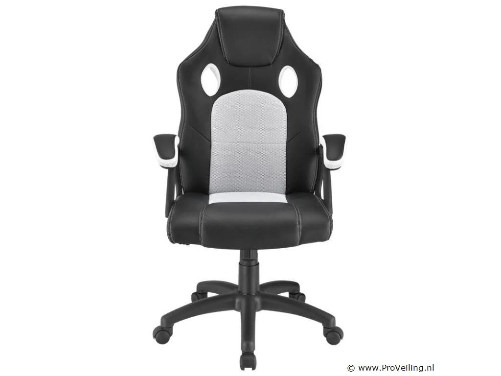 De gezellige Racing bureaustoel Montreal (wit) overtuigt met een hoog zitcomfort. Met zijn ergonomisch gevormde zitting, de kantelbare rugleuning en zitting en de gecapitonneerde armleuningen laat de moderne bureaustoel in trendy racerdesign urenlang comfortabel zitten. De draaistoel is daarom ideaal om thuis op kantoor te werken, huiswerk te maken en te leren, en voor gepassioneerde gamers om op de computer te spelen. Technische specificaties: Materiaal: kunststof, metaal, imitatieleer, mesh inzetstuk Kunstleer kleur: zwart Netkleur: wit Maximale belasting: 120 kg Afmetingen (ongeveer): Totale hoogte: 101 - 111 cm Hoogte rugleuning: 65 × 66 cm Zitting: 47 x 52 cm Zithoogte: 46 - 56 cm Zitbreedte: 47 cm Zitdiepte: 52 cm Leveringsomvang: 1 × bureaustoel 1 × montage-instructies