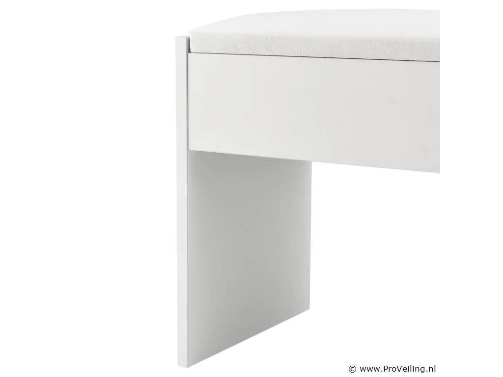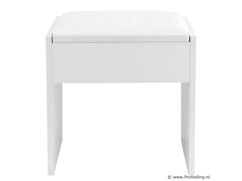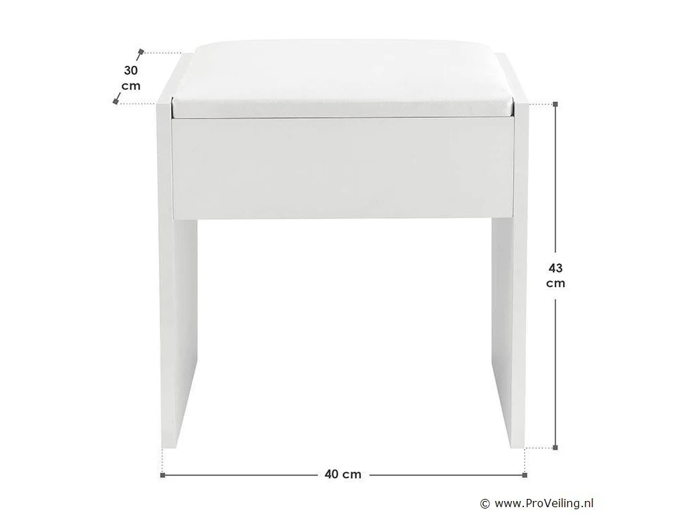 De comfortabele make-uptafelkruk Melly met zitkussen is het perfecte accessoire voor je make-uptafel. In het nobele en eenvoudige ontwerp verbetert de kruk elke kaptafel visueel. De kruk met imitatieleren bekleding geeft je genoeg comfort voor je dagelijkse make-up routine. Je kunt hem ook gebruiken als zitje in de woonkamer, slaapkamer of kinderkamer. De make-up kruk is gemaakt van wit gelakt MDF-hout en is uiterst onderhoudsvriendelijk. Het wordt niet voor niets beschouwd als een speciaal cadeau voor meisjes en vrouwen voor verjaardagen of Kerstmis. Technische specificaties: Materiaal lijst: MDF-hout Materiaal bekleding: polyurethaanleer Kleur kruk: wit Maximale belasting: 80 kg Afmetingen (ongeveer): Breedte: 40 cm Lengte: 30 cm Hoogte: 43cm Leveringsomvang: 1 x kruk 4 x standaard 1 x montageset 1 x Instructie