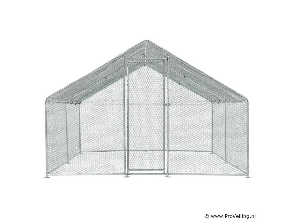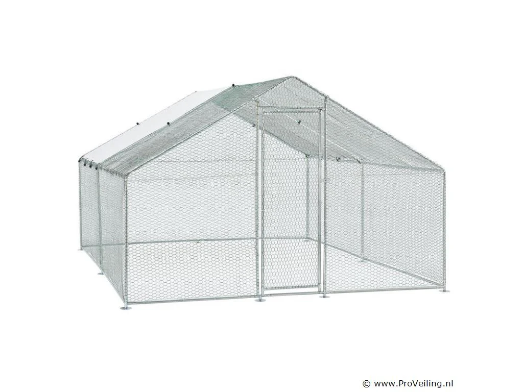 Ben je zelfvoorzienend of heb je een uitlaatklep nodig voor de trend “houd de kippen in de tuin”? Het buitenverblijf HLS25T van 3x4x2 m is perfect voor het soortspecifiek buiten houden van dieren. In de gegalvaniseerde box voor kippen, konijnen en ganzen hebben kleine dieren buiten genoeg ruimte op 12 m². Planten zijn hier ook beschermd en droog. Je bevestigt het waterdichte zeildoek flexibel aan het frame. Door de gegalvaniseerde buizen en het PVC-gecoate hek heb je een stabiel en duurzaam kippenhok dat je eenvoudig in elkaar zet door middel van het plug-and-click systeem. Technische specificaties: Materiaal draad: galvanisch verzinkt ijzer, PVC gecoat, zeshoekig (vorm) Materiaal palen: gegalvaniseerd ijzer Materiaal dekzeil: PE (waterdicht, regenbescherming), materiaal accessoires: kunststof Boxkleur: zilver, grijs (frame), wit (zeildoek), groen (net) Geschikt voor: kleine dieren zoals kippen, konijnen, ganzen, eenden & planten (bijv. gewassen, bloemen) Bijzonderheden: Toegankelijk via hoge deur, met poortgrendel, zeildoek Boxvorm: Vierkant Plaats van gebruik: buiten Afmetingen (ongeveer): Totale afmetingen van de volière: 300 x 400 x 200 cm (BxLxH), 385 cm (exacte lengte) Buitenruimte: 12 m² Hoogte dak: 115 - 200 cm Deur: 55 x 158 cm (BxH) Buisdiameter: 2,5 cm, dikte: 1 mm Rasterhek: 3 x 4 cm (BxH), dikte: 0,5 mm Dekzeil: 340 x 195 cm (BxH) Rol kippennet: 1 x 36m Leveringsomvang: 1 x Ren 1 x rol kippenhek 1 x dakzeil 1 x deur met vergrendeling 1 x Instructie Let op: Alleen geschikt voor kleine dieren zoals kippen, konijnen, ganzen, eenden & planten. Vraag: Kan ik meerdere producten aan elkaar koppelen? Nee. Kan de deur rechts of links worden geopend? We raden aan om ze links te monteren, rechts kan ook. De box is afsluitbaar met een grendel. Er is geen slot met sleutel, het wordt met de hand geopend en gesloten. Het PE dekzeil (waterdicht) heeft geen zonwerende functie, maar dient als regenwering. Je bevestigt het dekzeil flexibel aan de palen door middel van de elastische banden.