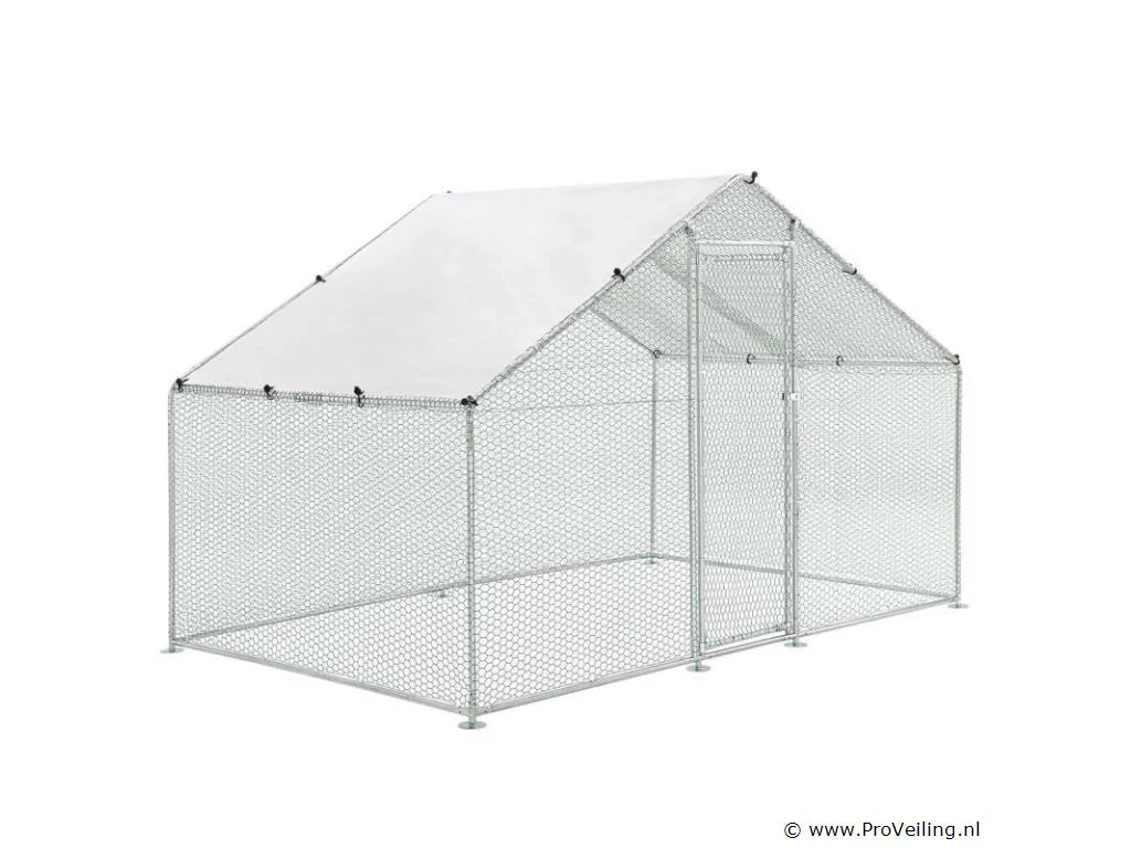 Ben je zelfvoorzienend of heb je een uitlaatklep nodig voor de trend “houd de kippen in de tuin”? Het buitenverblijf HLS25T van 3x2x2 m is perfect om dieren op een soortspecifieke manier buiten te houden. In de gegalvaniseerde box voor kippen, konijnen en ganzen hebben kleine dieren op 6 m² genoeg buitenruimte. Planten zijn hier ook beschermd en droog. Je bevestigt het waterdichte zeildoek flexibel aan het frame. Door de gegalvaniseerde buizen en het PVC-gecoate hek heb je een stabiel en duurzaam kippenhok dat je eenvoudig in elkaar zet door middel van het plug-and-click systeem. Technische specificaties: Materiaal draad: galvanisch verzinkt ijzer, PVC gecoat, zeshoekig (vorm) Materiaal palen: gegalvaniseerd ijzer Materiaal dekzeil: PE (waterdicht, regenbescherming), materiaal accessoires: kunststof Boxkleur: zilver, grijs (frame), wit (zeildoek), groen (net) Geschikt voor: kleine dieren zoals kippen, konijnen, ganzen, eenden & planten (bijv. gewassen, bloemen) Bijzonderheden: Toegankelijk via hoge deur, met poortgrendel, zeildoek Boxvorm: Vierkant Plaats van gebruik: buiten Buitenverblijf 2x3 m: datablad om te downloaden Afmetingen (ongeveer): Totale afmetingen van de volière: 300 x 200 x 200 cm (BxLxH) Oppervlakte buitenruimte: 6m² Hoogte dak: 115 - 200 cm Deur: 65 x 174 cm (BxH) Buisdiameter: 2,5 cm, dikte: 1 mm Rasterhek: 3 x 4 cm (BxH), dikte: 0,5 mm Dekzeil: 340 x 188 cm (BxH) Rol kippennet: 1 x 24m Leveringsomvang: 1 x Kippenren 1 x rol kippenhek 1 x dakzeil 1 x deur met vergrendeling 1 x Instructie Let op: Alleen geschikt voor kleine dieren zoals kippen, konijnen, ganzen, eenden & planten. Vraag: Kan ik meerdere producten aan elkaar koppelen? nee Kan de deur rechts of links worden geopend? We raden aan om ze links te monteren, rechts kan ook. De box is afsluitbaar met een grendel. Er is geen slot met sleutel, het wordt met de hand geopend en gesloten. Het PE dekzeil (waterdicht) heeft geen zonwerende functie, maar dient als regenwering. Je bevestigt het dekzeil flexibel aan de palen door middel van de elastische banden.