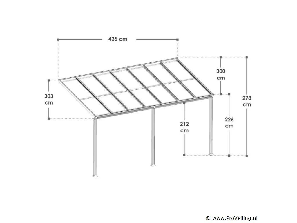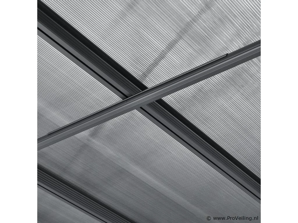 Bent u op zoek naar een moderne, stabiele en hoogwaardige zonwering? De 4×3 m aluminium terrasoverkapping Borneo (antraciet) is de perfecte overkapping voor uw terras. Door de robuuste metalen constructie en de elegante uitstraling dient het dak jarenlang als stijlvolle zonwering. Of het nu gaat om de felle zon of een regenbui - de terrasoverkapping biedt u bescherming tegen regen en schadelijke UV-straling. Zo breng je je vrije tijd altijd ontspannen buiten door. Want met de betrouwbare overkapping ben je goed beschermd! Tegelijkertijd beschermt het ook je geliefde tuinmeubelen tegen weersinvloeden. Technische specificaties: Materiaal frame: aluminium gepoedercoat Materiaal aansluitingen: verzinkt staal Materiaal dak: polycarbonaat met UV-coating Kleur frame & webplaten: donkergrijs Aantal berichten: 3 Aantal regengoten: 2 Aantal kanaalafvoer: 3 Dakdruk draagvermogen: 70 kg/m2 Windkracht: Tot 100 km/u (windkracht 10) Afmetingen (ongeveer): Breedte: 435cm Diepte: 303 cm Hoogte voorkant: 212 cm Hoogte voorzijde: 226 cm Hoogte achter: 278 cm Metaaldikte: 1 mm Dikte dubbelwandige platen: 6 mm Afmetingen paal: 4 x 10 cm Leveringsomvang: 1 x terrasoverkapping 1 x instructie