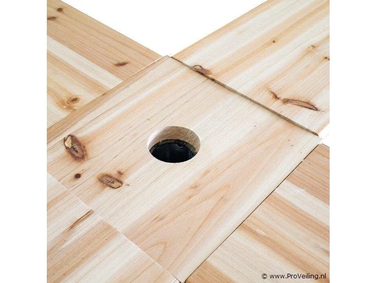 Met de hoogwaardige biertafel zorg je voor de juiste opbergruimte voor je feesten. Aan de kruisvormige biertafel kunnen maximaal 20 personen plaatsnemen. Het kan worden gecombineerd met andere sets en tuinmeubelen en is perfect voor feesten zoals verjaardagsfeestjes, Oktoberfest of bedrijfsevenementen. Het onderstel van robuust staal klap je in een paar simpele stappen op, zodat de tafel ruimtebesparend kan worden opgeborgen en vervoerd. Het tafelblad is gemaakt van massief, stevig hout en heeft een parasoluitsparing. Technische specificaties: Afmetingen (L/B/H): 241 x 241 x 103 cm Afmetingen (L/B/H) ingeklapt: 30 x 30 x 114cm Lengte tafelarm: 108 cm Hoogte: 103cm Uitsparing parasol: 55mm Materiaal: gelakt sparrenhout, gecoat stalen frame, kunststof voeten Gewicht: ca. 21 kg Hout is een natuurproduct, in combinatie met scharnieren kunnen er oneffenheden en afwijkingen in de pasvorm ontstaan, zonder dat dit de functie aantast. Leveringsomvang: 1x biertafel