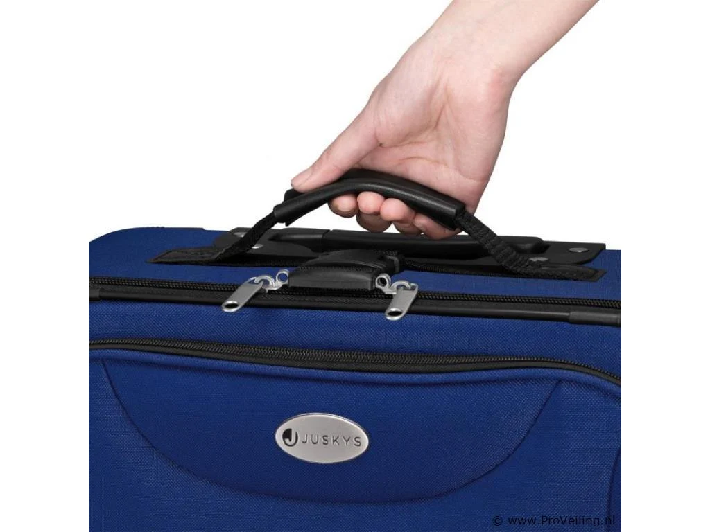 De 5-delige trolleykofferset Athens in de kleur blauw is de ideale basisuitrusting voor elke gelegenheid. Of het nu gaat om vakantie, stedentrip, weekendtrip of zakenreis, de set biedt de juiste koffer voor uw eisen. Naast 2 trolleys van verschillende afmetingen met lichtlopende wielen en aluminium telescopische stangen, bevat de set een praktische schoudertas voor handbagage en twee compacte en stijlvolle make-uptassen. De tassen en koffers zijn gemaakt van robuust polyester en hebben een waterafstotende coating. Voor meer veiligheid kunnen de hoofdvakken van de trolleys worden afgesloten (hangslot niet inbegrepen). Als je de set niet gebruikt, kun je de set in elkaar opbergen om ruimte te besparen en veilig op te bergen. Technische specificaties: Materiaal: aluminium, stof (Oxford polyester stof 600D) Materiaal wielen: rubber Kleur blauw Maximale belasting trolley L: 30 kg Maximale belasting trolley M: 15 kg Afmetingen (ongeveer): Trolley L buitenafmetingen: 64 x 44 x 21 cm Trolley L Inhoud: 60 liter Trolley M buitenafmetingen: 52 x 37 x 18 cm Trolley M Inhoud: 34 liter Buitenafmetingen schoudertas: 38 x 28 x 15 cm Capaciteit schoudertas: 16 liter Buitenafmetingen toilettas: 24 x 13 x 10 cm Capaciteit make-uptas: 3 liter Leveringsomvang: 1 × trolley maat L 1 × trolley maat M 1 × schoudertas 2 x make-uptas 1 × Instructie Kijk voor bestelling eerst goed naar de afmetingen!