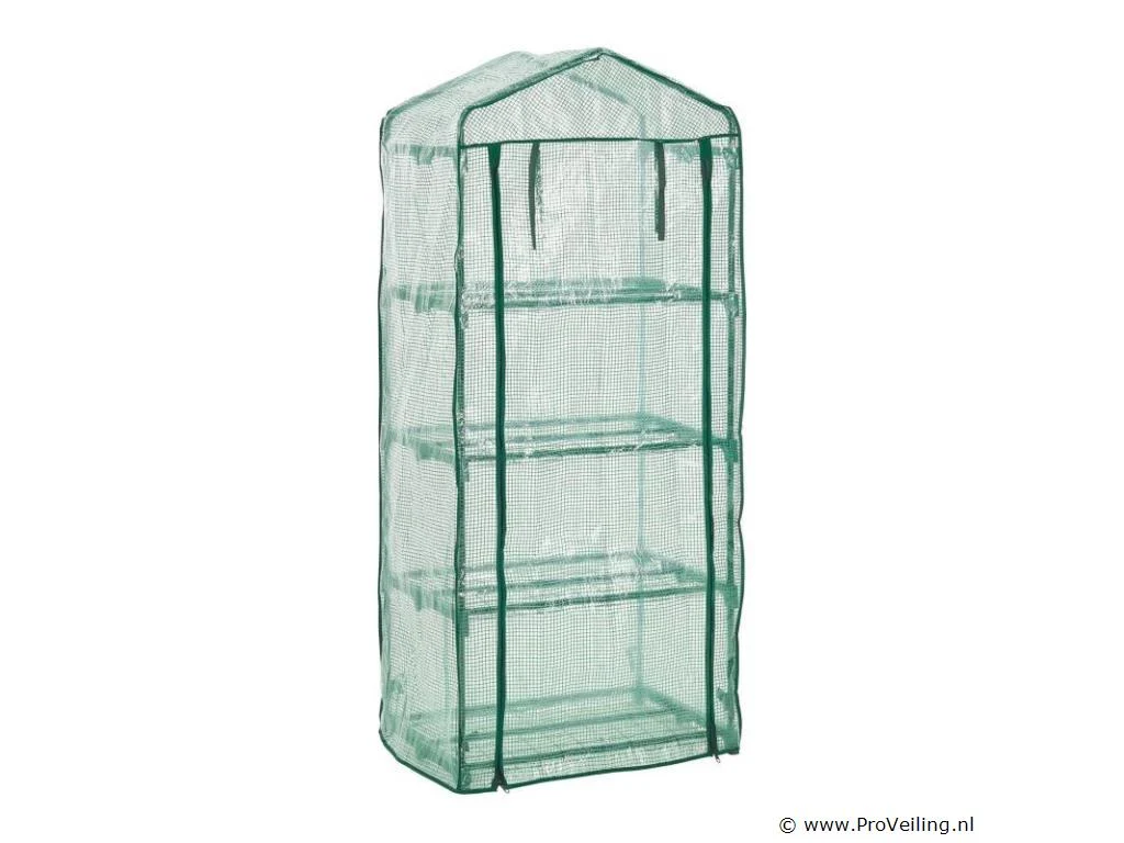 De foliekas 66x162x48 cm met PE-afdekking is bijzonder compact en licht, ideaal voor het kweken van groenten en fruit of voor het overwinteren van kleine planten. De robuuste beschermfolie van polyethyleen houdt ongedierte en negatieve weersinvloeden betrouwbaar buiten de deur. Tegelijkertijd laat het de ongehinderde penetratie van zonnestralen toe om een ??ideaal microklimaat te creëren voor de groei van de planten. Dankzij de kleine voetafdruk is de broeikas speciaal ontworpen voor op het balkon of terras. Het eenvoudige steeksysteem maakt een snelle en ongecompliceerde montage mogelijk. Technische specificaties: Materiaal frame: metaal (gepoedercoat), polypropyleen Materiaal folie: polyethyleen Kleur: helder, groen Draagvermogen: 40 kg per niveau Afmetingen (ongeveer): Afmeting (BxHxD): 66x162x48 cm Buizen: Ø 1,6 cm Leveringsomvang: 1 × broeikas 1 × afdekfolie 1 × montage-instructies