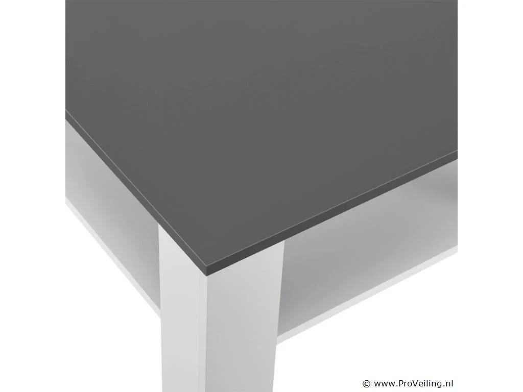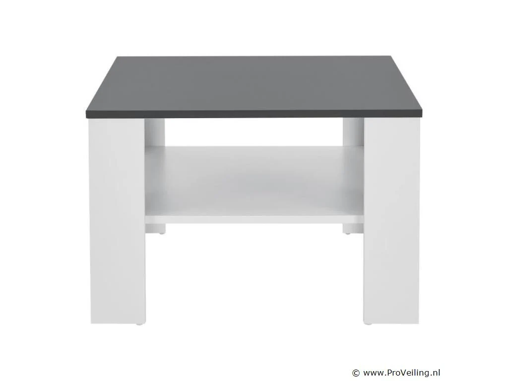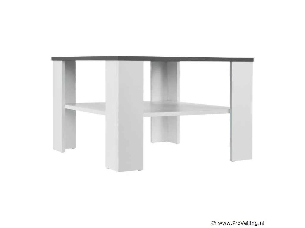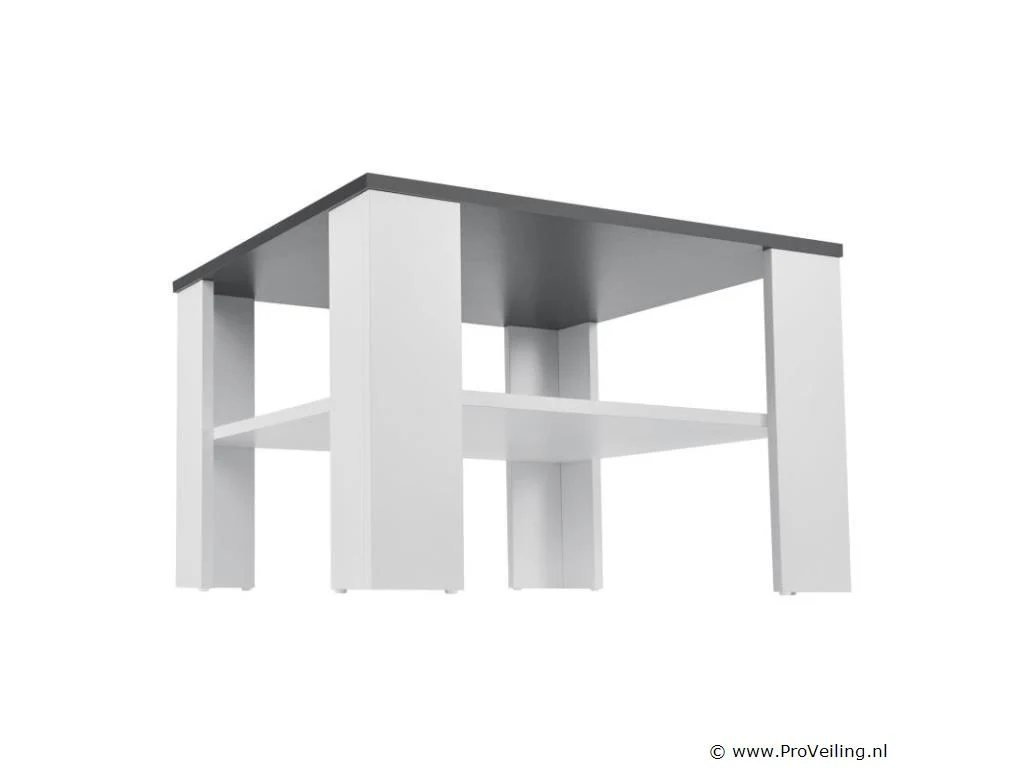 Met zijn compacte design en de eenvoudige, rechtlijnige look past de tafel in wit en donkergrijs perfect in bijna elke sfeer. De afmetingen van slechts 60 x 60 cm maken hem ideaal voor kleine ruimtes of als discrete bijzettafel. Op zijn 2 niveaus biedt hij verrassend veel ruimte voor drankjes, snacks, tijdschriften of afstandsbedieningen. De woonkamertafel is gemaakt van hout, wat hem niet alleen veerkrachtig en robuust maakt, maar ook licht van gewicht. Dankzij de melaminecoating zijn de oppervlakken ongevoelig voor krassen en zeer onderhoudsvriendelijk. Technische specificaties: Materiaal: spaanplaat E1 (melamine gecoat) Kleur: wit/donkergrijs Afwerking: Mat Maximale belasting: 50 kg Afmetingen (ongeveer): Totale afmetingen (LxBxH): 60x60x40 cm Afmeting vak: 57x57 cm Hoogte vak: 19 cm Materiaaldikte: 15 mm Bodemvrijheid: 20 cm Leveringsomvang: 1 × tafel 1 × montage-instructies