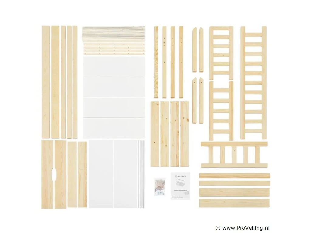 Het kinderbed Marli (160x80 cm, houtkleur) met bedstee, valbeveiliging en lattenbodem maakt indruk op meisjes en jongens van 3 tot 10 jaar. Verfraai de kinderkamer met het moderne huisbed, een slaapplek, speelbed en opbergruimte in één. Speelgoed kan netjes worden opgeborgen in de grote 2-delige bedbak. En de huislook met dak biedt vele vormgevingsmogelijkheden - als grot of met een betoverende luchtdecoratie. Uitgerust met een rail biedt het bed ook meer bescherming en veiligheid voor jonge kinderen. Het houten bed van massief en onderhoudsvriendelijk grenenhout is de juiste keuze voor langdurig gebruik. Technische specificaties: Materiaal lijst: grenenhout Materiaal lattenbodem: hout, 13 latten Kleur houtkleur Maximale belasting: 125 kg Maximale belasting per lade: 25 kg Aantal lades: 2 Matras: Geen Afmetingen (ongeveer): Totale afmetingen (BxLxH): 87x167x154 cm Ligvlak (BxL): 80x160 cm Bedstee (BxDxH): 78x84x14 cm Leveringsomvang: 1 x kinderbed 80x160 cm 1 x lattenbodem 1 x dak 2 x bedlade 1 x Instructie