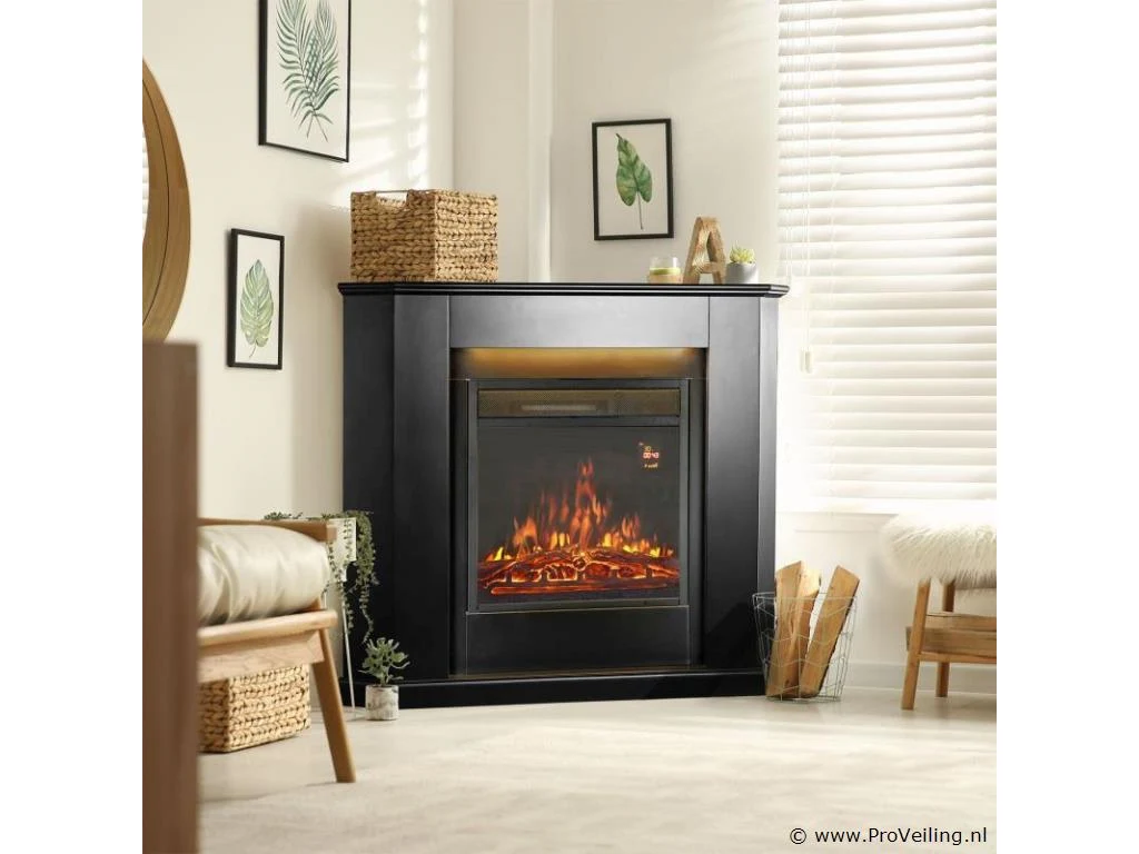 Er is nauwelijks iets beters dan gezellige uurtjes voor een open haard door te brengen terwijl het buiten grauw en koud is. Met de elektronische haard met verwarmingsfunctie en vlameffect doe je dit volledig risicoloos zonder echt vuur. Hij overtuigt niet alleen met zijn elegante haardlook, maar vooral met zijn uitgebreide functies. De geïntegreerde luchtverhitter zorgt moeiteloos voor aangenaam warme temperaturen, terwijl het vuureffect in verschillende lichtsterktes voor een gezellige sfeer zorgt. De individueel instelbare LED-verlichting rondt het totaalpakket af. Pure romantiek met één druk op de knop. Snel gemonteerd en aangesloten Het installeren van de sfeerhaard is supersimpel en eenvoudig. Met behulp van de gedetailleerde montage-instructies zet u het product in een handomdraai in elkaar. Plaats de haard vervolgens op de gewenste plek, bijvoorbeeld in de woonkamer. Steek de stekker in het stopcontact en u kunt aan de slag. Technische specificaties: Materiaal: MDF-hout, gehard glas, hars Kleur zwart Ingangsspanning: 220-240 V~, 50/60 Hz Vermogensniveaus: 1000 / 2000 watt LED-verlichting: 13 kleuren Temperaturen: 15 – 30 °C Vlamhelderheidsniveaus: 5 Vorm: driehoekig Afmetingen (ongeveer): Buitenafmetingen (BxDxH): 96x57x93 cm Kachel (BxDxH): 47x21x52 cm Leveringsomvang: 1 x LED-verlichting 1 x afstandsbediening 1 × Montage-instructies Let op dit artikel bestaat uit 2 dozen, het kan logistiek voorkomen dat het in meerdere dagen geleverd wordt.