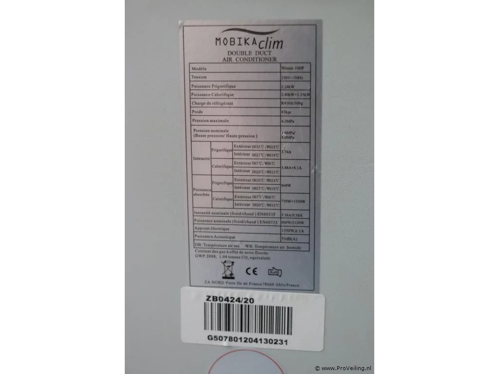 Mobiele airconditioner: merk Mobika Clim; model Winnie 10HP; incl. afstandsbediening; afmetingen ca. 68x30x61cm.