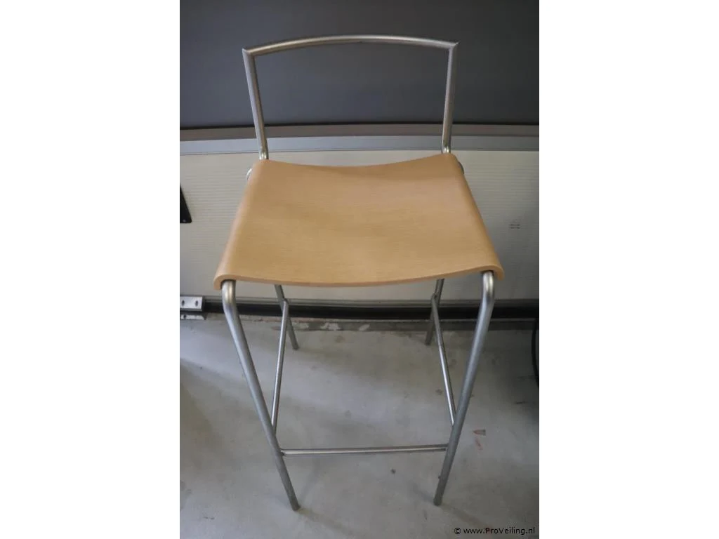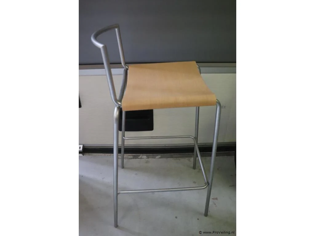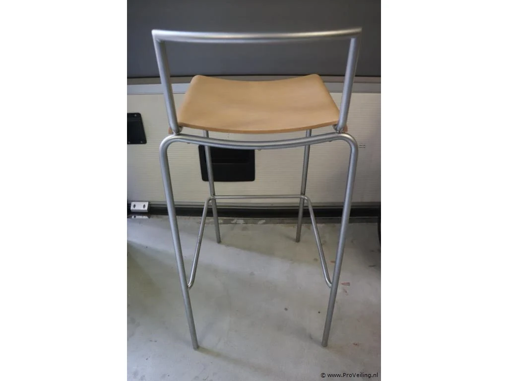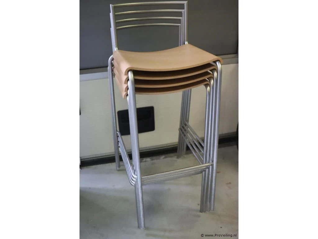 Barkrukken; materiaal: hout/metaal; afmetingen ca. 36-42x48x92cm; zithoogte ca. 76cm; aantal 4 stuks.
