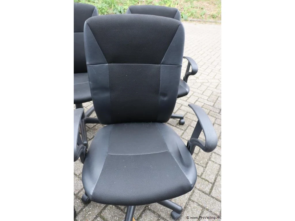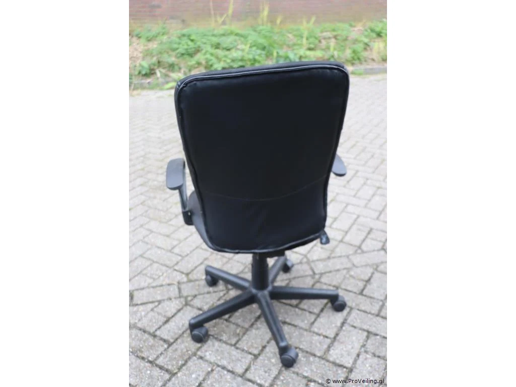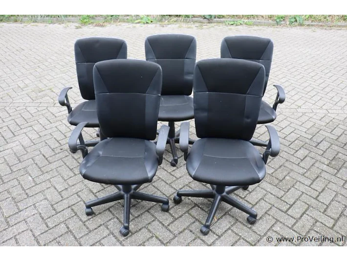 Bureaustoelen; zwart (skai) leder gestoffeerd; afmetingen ca. 62x60x100cm; aantal 5 stuks.