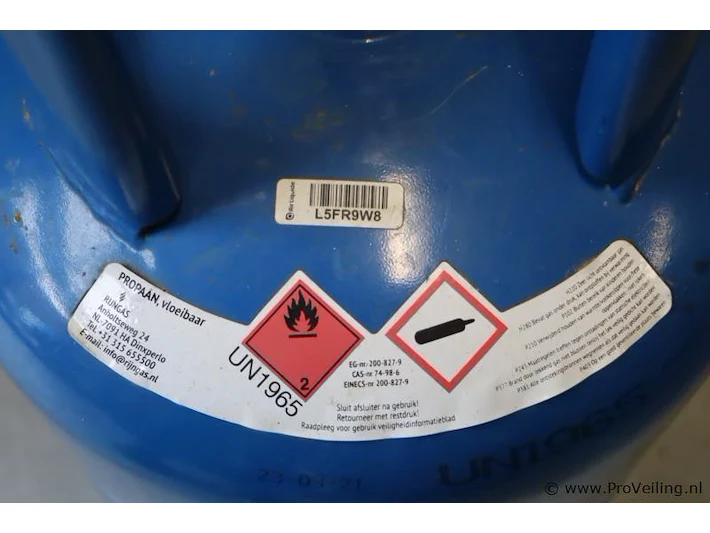 Gasfles: merk Rijngas; inhoud 10,3kg.
