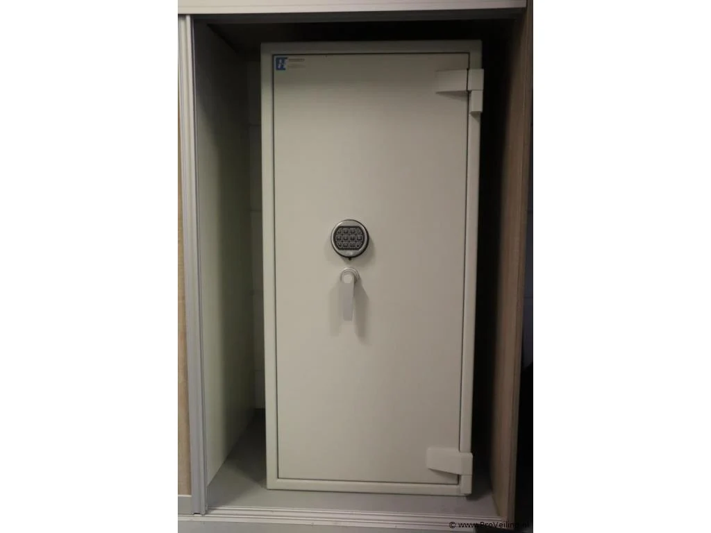 Kluis; afmetingen ca. 56x56x120cm; zonder code; zit vast aan de grond; door koper zelf vakkundig te demonteren op aanwijzing van ProVeiling.