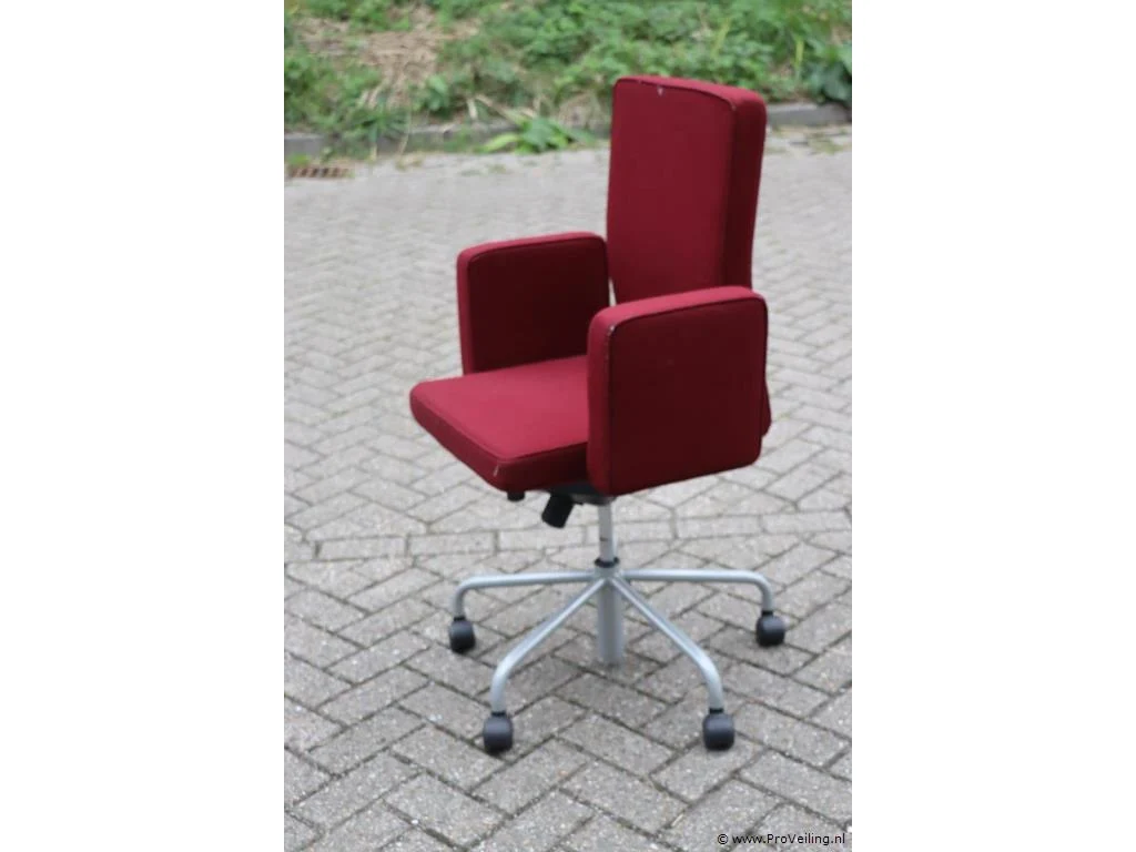 Vergader/bureaustoel: merk Pub & Club; kleur rood gestoffeerd; afmetingen ca. 63x54x108cm.