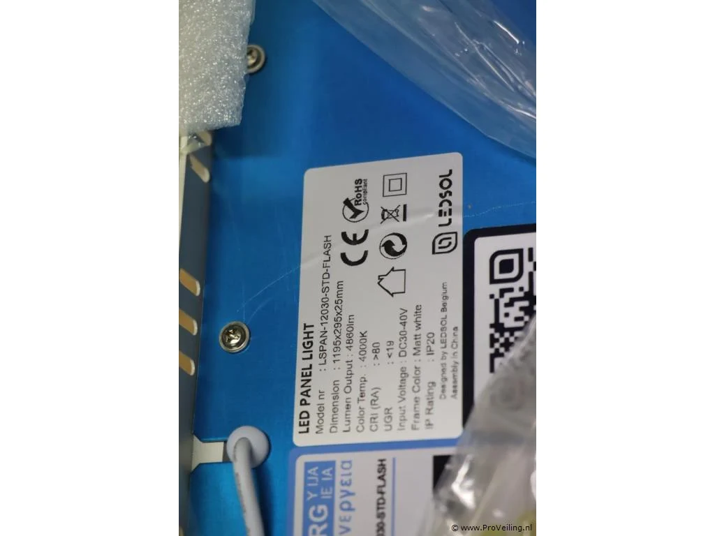 Ledpanelen: merk Ledsol; type LSPAN -12030-STD-Flash; 4000K; afmetingen ca. 1195x295x25mm; aantal 2 stuks.