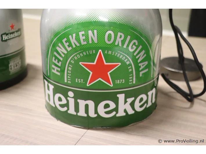 Hanglampen met opdruk "Heineken"; aantal 3 stuks.