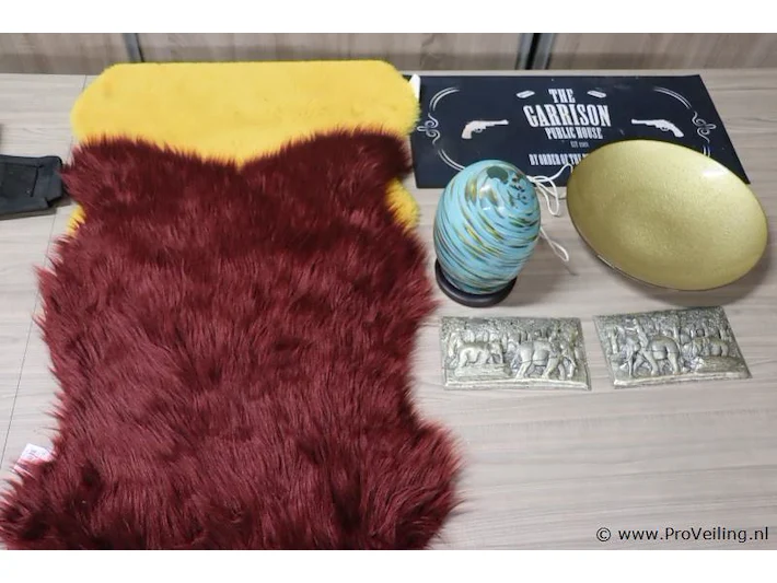 Partij decoratiemateriaal o.a. kleedje, wanddecoratie & schaal