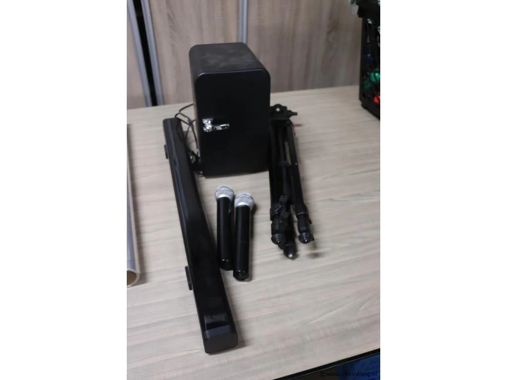 Partij diversen o.a. mini-koelkast, statief, microfoons (2x) & roseland bluetooth soundbar
