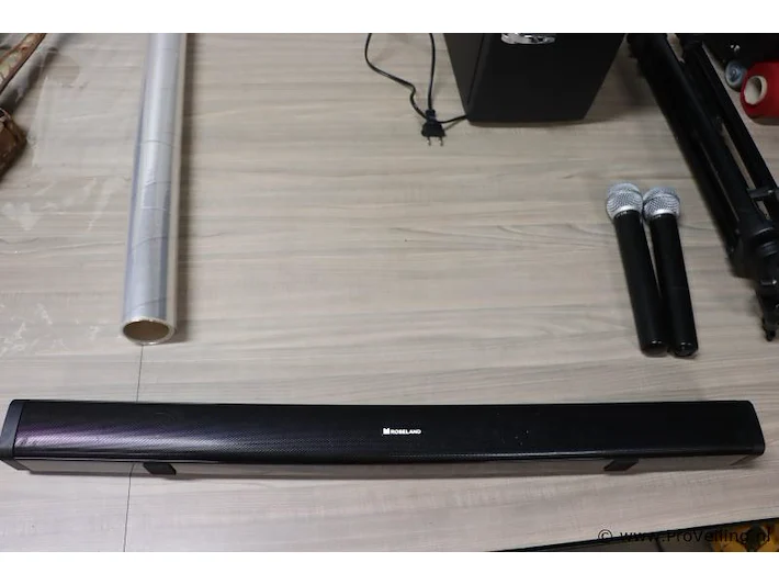 Partij diversen o.a. mini-koelkast, statief, microfoons (2x) & Roseland bluetooth soundbar; zie afbeeldingen.