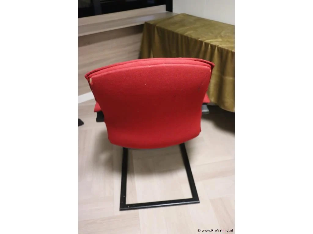Stoel; kleur rood gestoffeerd; afmetingen ca. 63x65x95cm; zithoogte ca. 45cm.