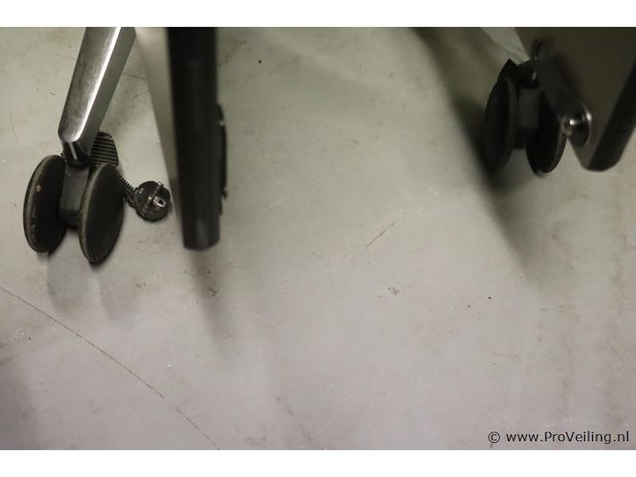 Vergader/bureautafel op wielen; voorzien van stekkerblok; inklapbaar; afmetingen ca. 280x110x72cm.