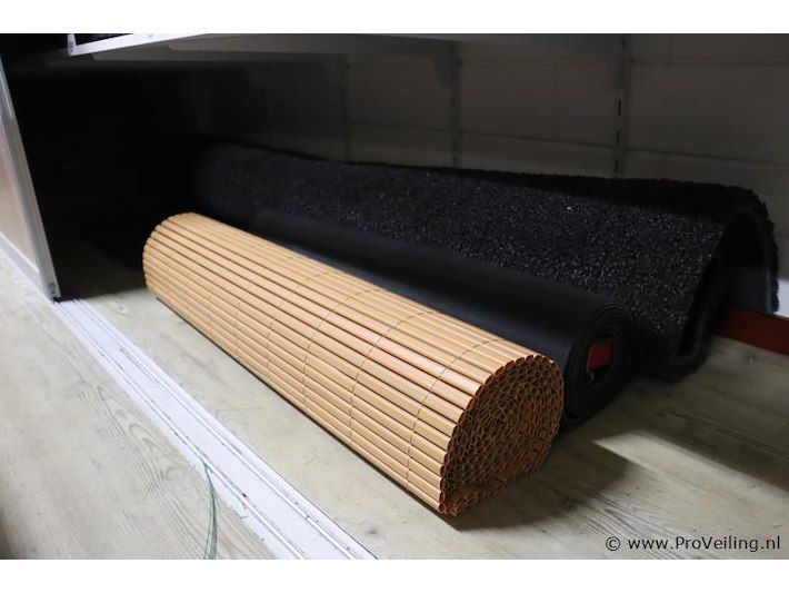 Partij diversen o.a. bamboe balkonscherm & tapijt