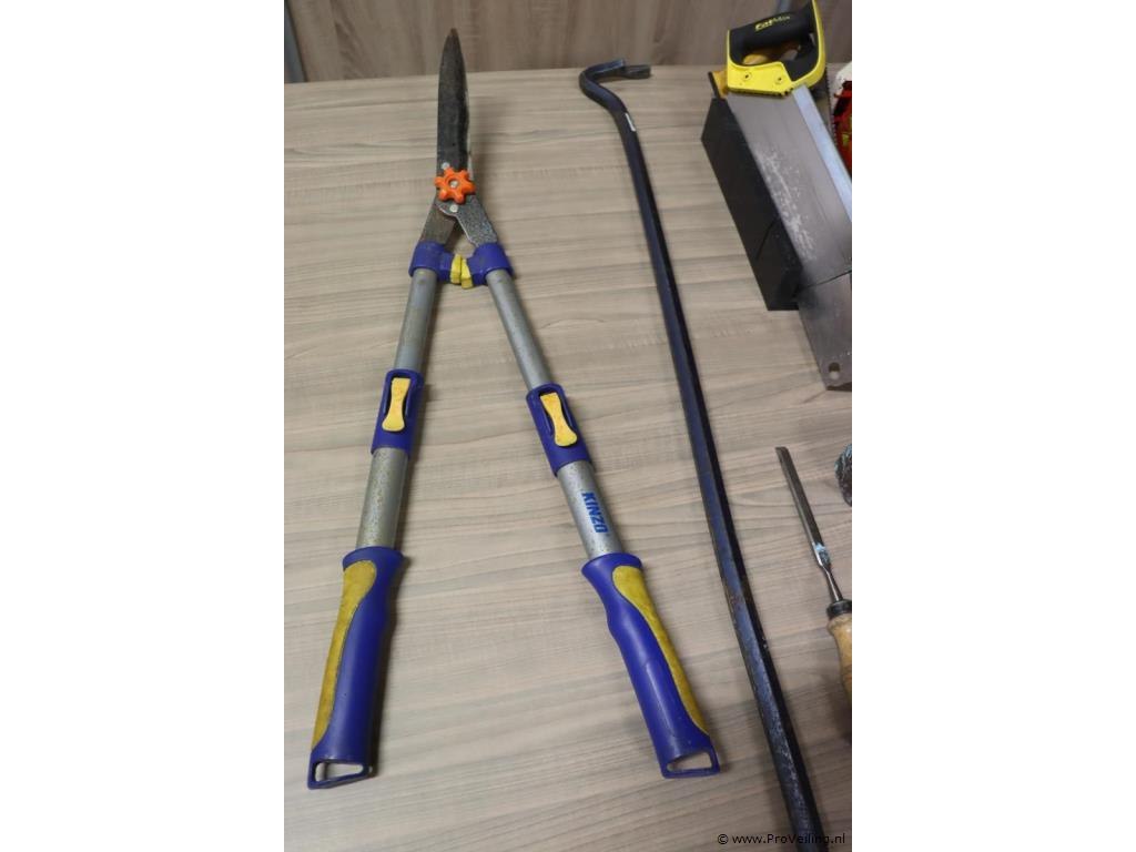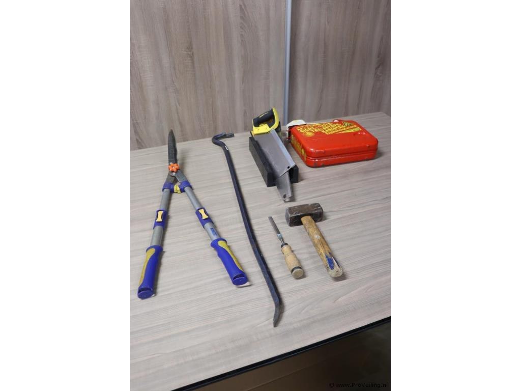 Partij gereedschappen o.a. heggenschaar, hamer, zaag & koevoet; zie afbeeldingen.