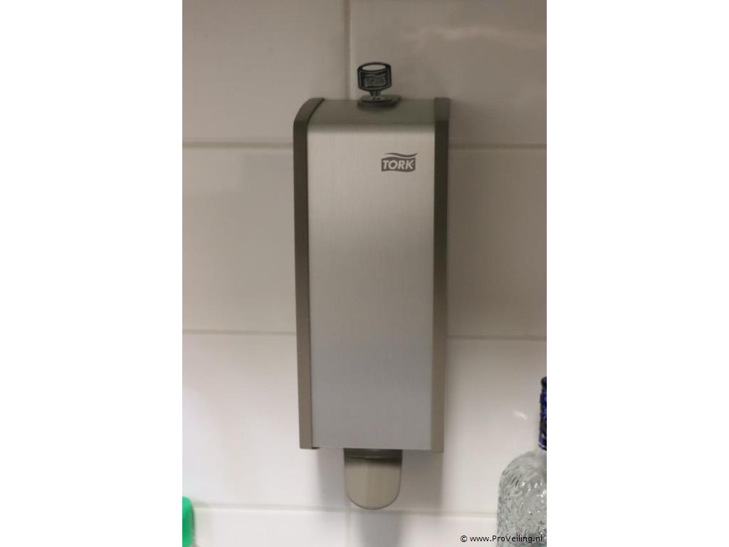 Zeepdispenser & handdoekdispenser: merk Tork; afmetingen zeepdispenser ca. 10x10x29cm & handdoekdispenser ca. 28x10x50cm; zie afbeeldingen.