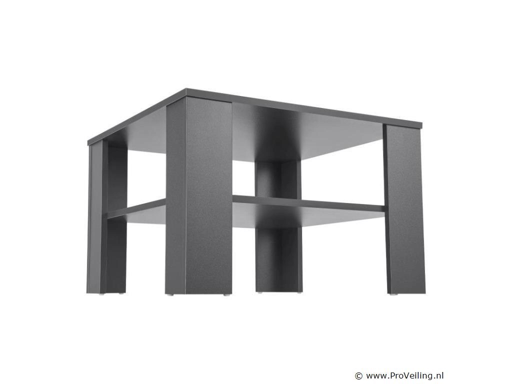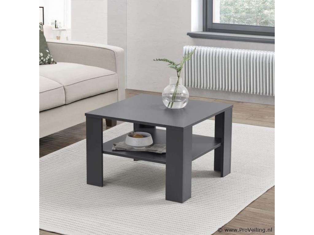 Met zijn compacte design en de eenvoudige, rechtlijnige look past de donkergrijze tafel perfect in bijna elke sfeer. De afmetingen van slechts 60 x 60 cm maken hem ideaal voor kleine ruimtes of als discrete bijzettafel. Op zijn 2 niveaus biedt hij verrassend veel ruimte voor drankjes, snacks, tijdschriften of afstandsbedieningen. De woonkamertafel is gemaakt van hout, wat hem niet alleen veerkrachtig en robuust maakt, maar ook licht van gewicht. Dankzij de melaminecoating zijn de oppervlakken ongevoelig voor krassen en zeer onderhoudsvriendelijk. Technische specificaties: Materiaal: spaanplaat E1 (melamine gecoat) Kleur: donkergrijs/houtlook Afwerking: Mat Maximale belasting: 50 kg Afmetingen (ongeveer): Totale afmetingen (LxBxH): 60x60x40 cm Afmeting vak: 57x57 cm Hoogte vak: 19 cm Materiaaldikte: 15 mm Bodemvrijheid: 20 cm Leveringsomvang: 1 × tafel 1 × montage-instructies