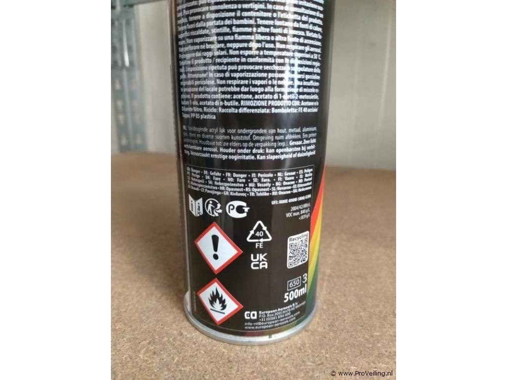 24 x Motip RAL 5010 spuitlak glans á 500ml. Geschikt voor diverse ondergronden. Voor binnen/ buiten gebruik.