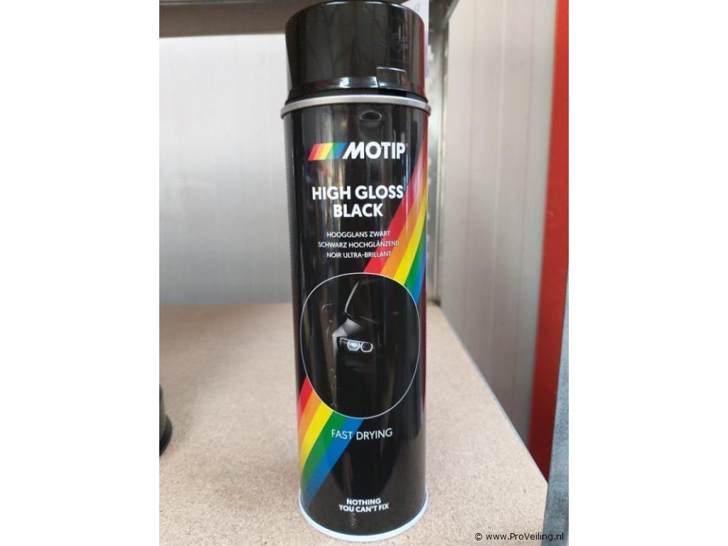 30 x Motip hoogglans zwart á 500ml. Geschikt voor diverse ondergronden. Voor binnen/ buitengebruik.