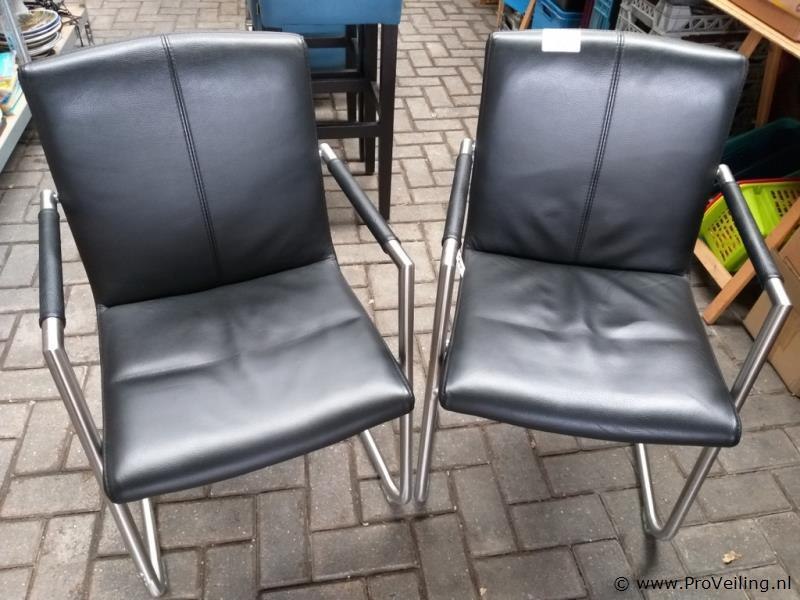 2 x Henders & hazel eetkamerstoel - type HH07 c5. Afmeting: zithoogte 48 cm - zitdiepte 42 cm - zitbreedte 44 cm. Gemeten met rugleuning: 86 cm. Lederen bekleding.