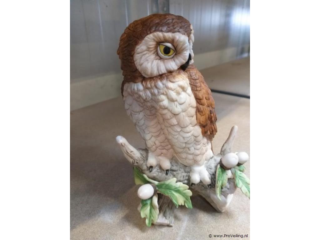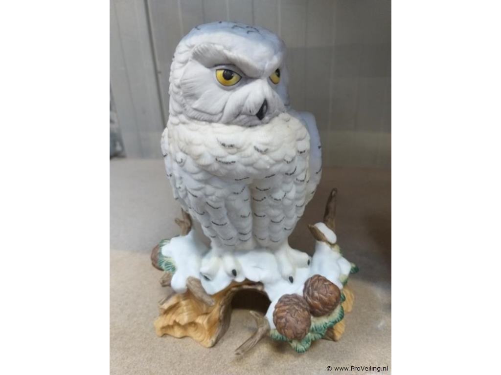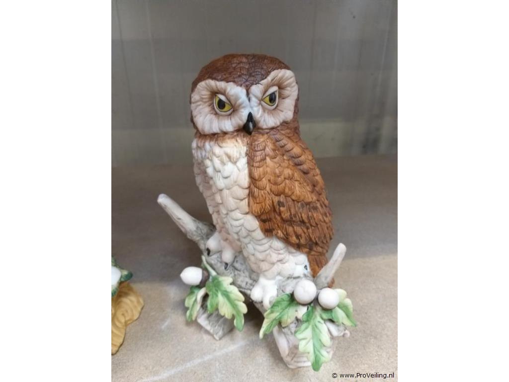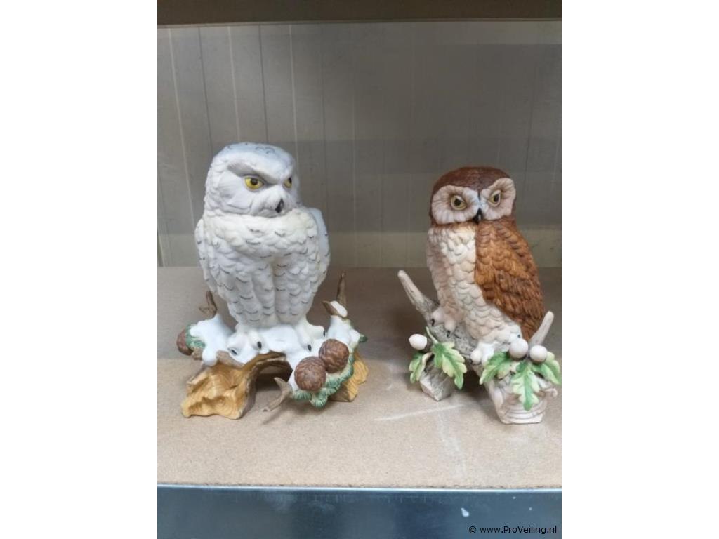 2 stuks decoratie uilen van porselein ( steen ). Circa 20 cm hoog.