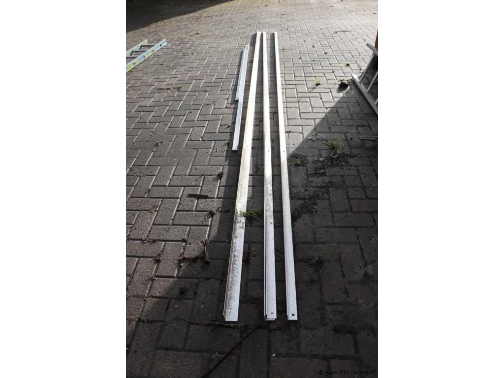 Partij profielstrippen; diverse maten o.a. 5x5x470cm (1x), 4x4x470cm (3 stuks), 4x4x270cm (1x) & 3x3x172cm (1x); zie afbeeldingen.