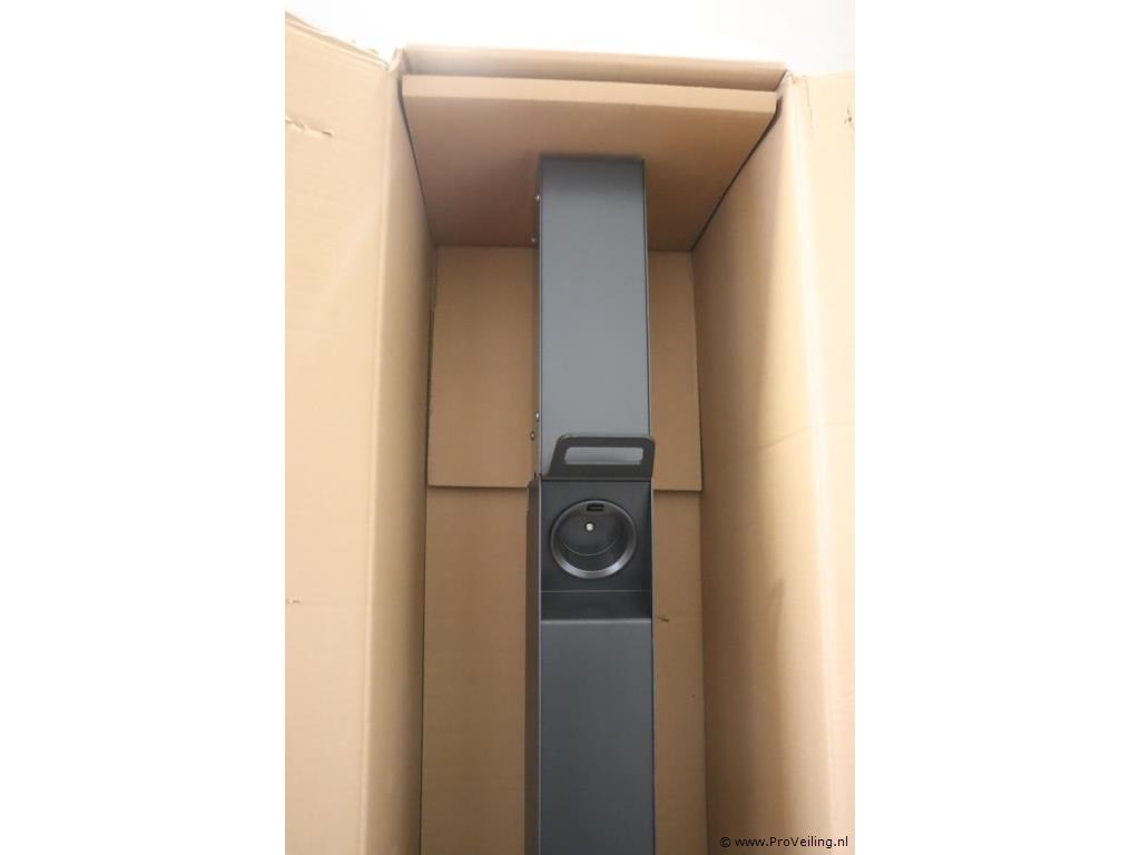 Modulaire Paal t.b.v. Single Laadstations; afmetingen 1970x405x360mm; nieuw in doos; winkelverkoopprijs ca. € 349.95. Deze roestvrijstalen rechthoekige (laad) paal is bedoeld voor de montage van een laadstation. Deze paal is uitgevoerd in het zwart. De montage op een paal vergroot de toegankelijkheid van het laadstation, met name op plaatsen waar montage op een muur niet mogelijk is. Verder kunt u kiezen voor een laadstation op een paal omdat u het misschien mooi vindt. De hoogte van de laadpaal is 120 cm. Door plaatsing van de laadbox op de paal kan het geheel iets hoger uitkomen. Afhankelijk van de montage/ plaatsing op de grond kan het geheel hoger of lager uitvallen. Geschikt voor Deze laadpaal is geschikt voor de volgende laadstations: - EVBox Livo - EVBox Elvi - Alfen S-Line en Pro-Line laders - Easee Home en Charge