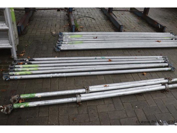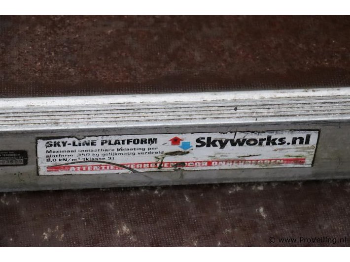 Rolsteiger: merk Skyworks; bestaande uit 5x BAT (259x63x7cm) waarvan 4x met luik en 1x vast; 4x wielen (Ø 20cm x 98cm); 2x steunen (Ø 5cm x 234cm); 6x schoor kort (Ø 5cm x 254cm); 11x schoor lang (Ø 5cm x 283cm); 2x valhek (Ø 5cm x 261x60cm); zie afbeeldingen. Attentie: dit kavel is onderdeel van een combi-kavel (1248296). Indien het bod op de combi-kavel hoger ligt dan alle individuele, komen deze te vervallen.