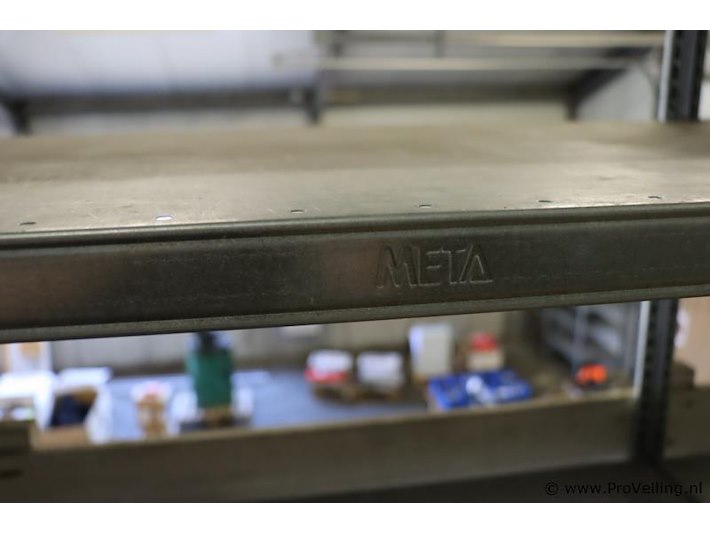 Stelling: merk META; afmetingen ca. 400x60x200cm; door koper zelf vakkundig te demonteren op aanwijzing van ProVeiling.