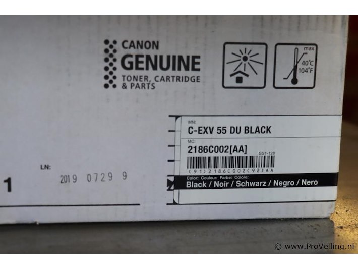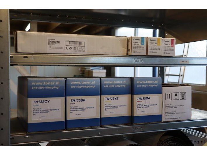 Partij toners: divese merken o.a. Canon; diverse kleuren o.a. Cyan, Yellow & Magenta; zie afbeeldingen.